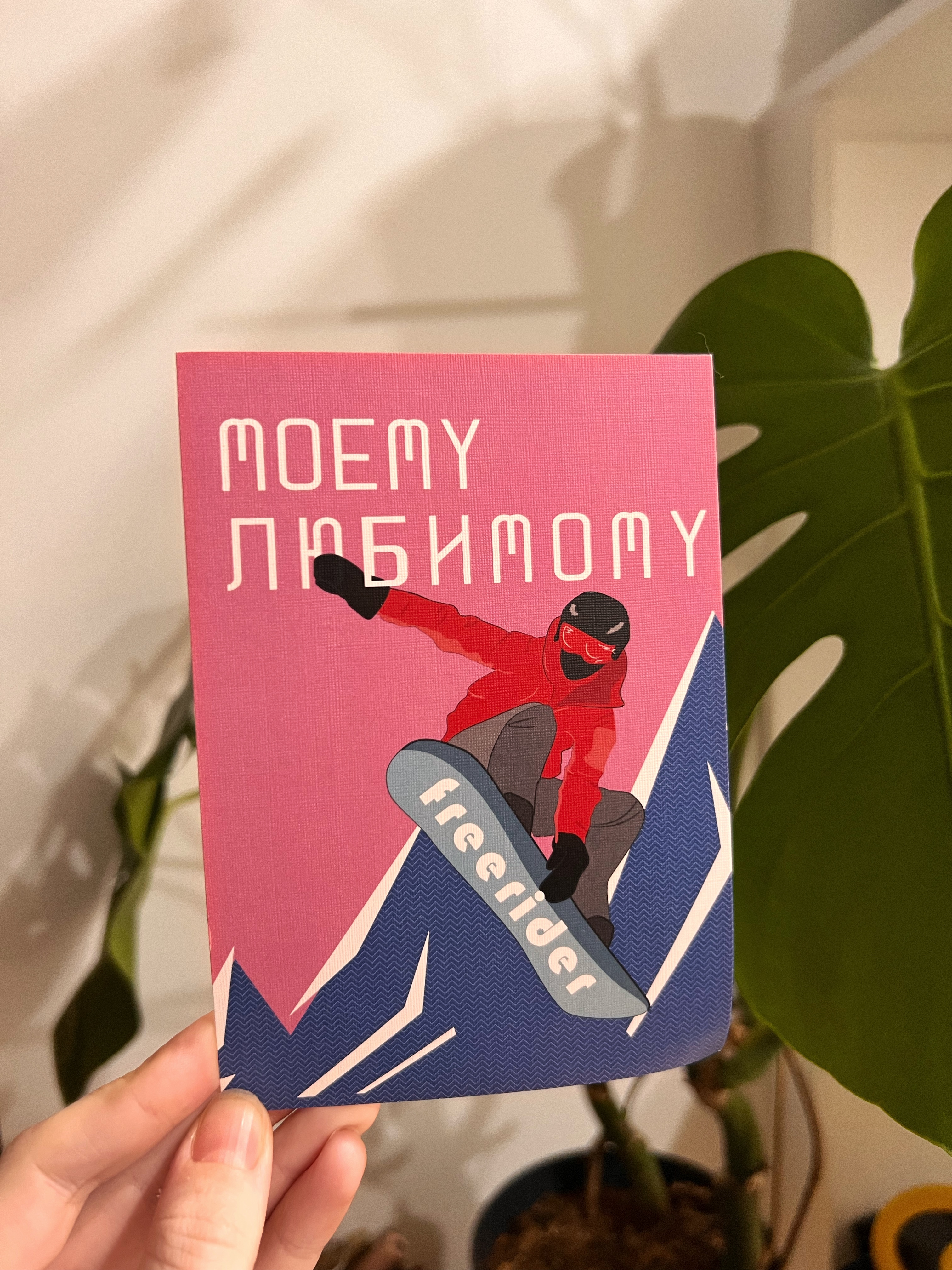 Открытка, стандартного размера, с обратной стороны небольшой логотип. Выполнена на качественной, фактурной бумаге "Лён"