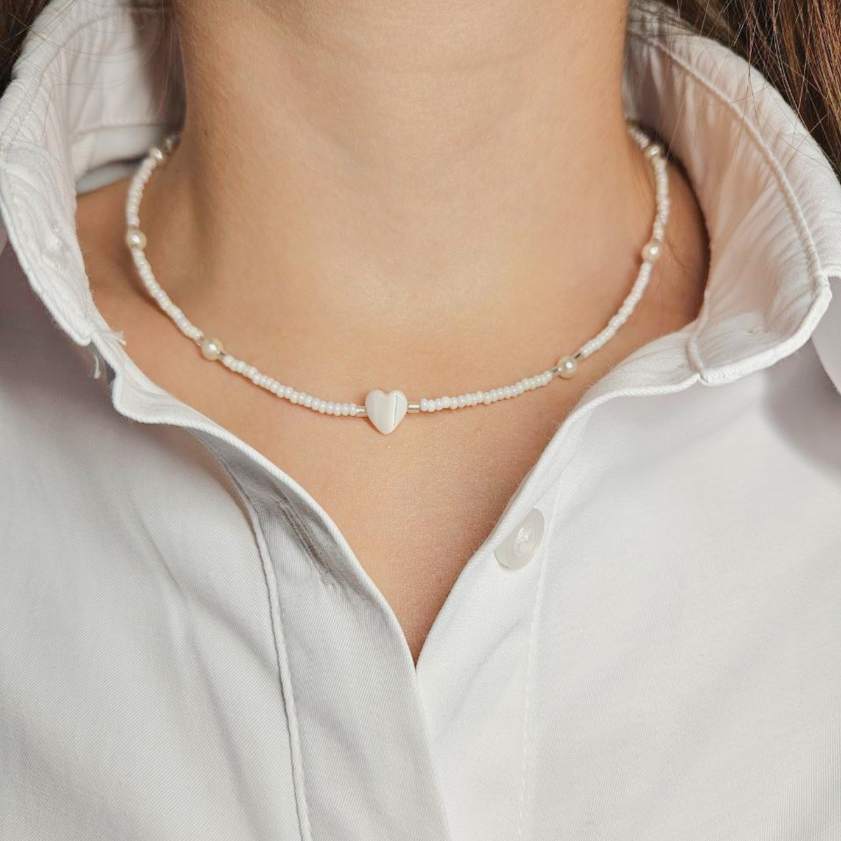 Удивительный чокер идеально сочетает в себе красоту бисера и уникальность натурального перламутра. Этот аксессуар станет прекрасным дополнением вашего образа и подчеркнёт вашу индивидуальность.
