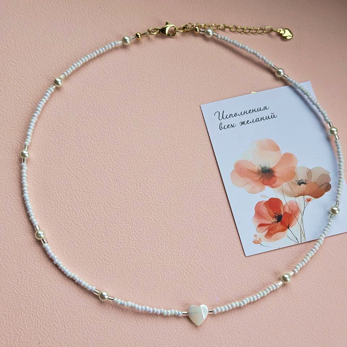 - Материалы: высококачественный бисер и вставка из натурального перламутра