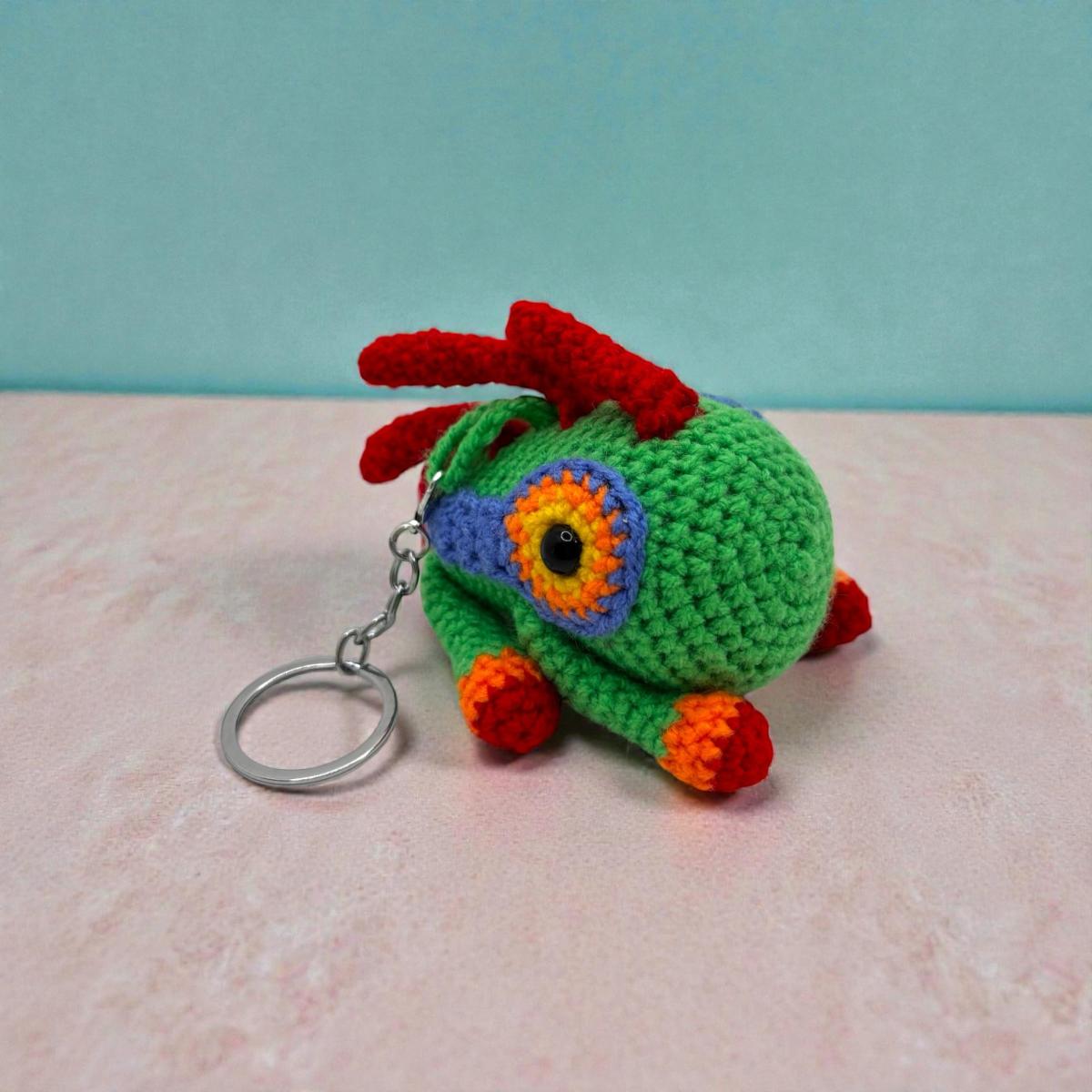 Вязаная игрушка, брелок. Мурлок, персонаж клмпьютерной игры. Размер: 10 см.