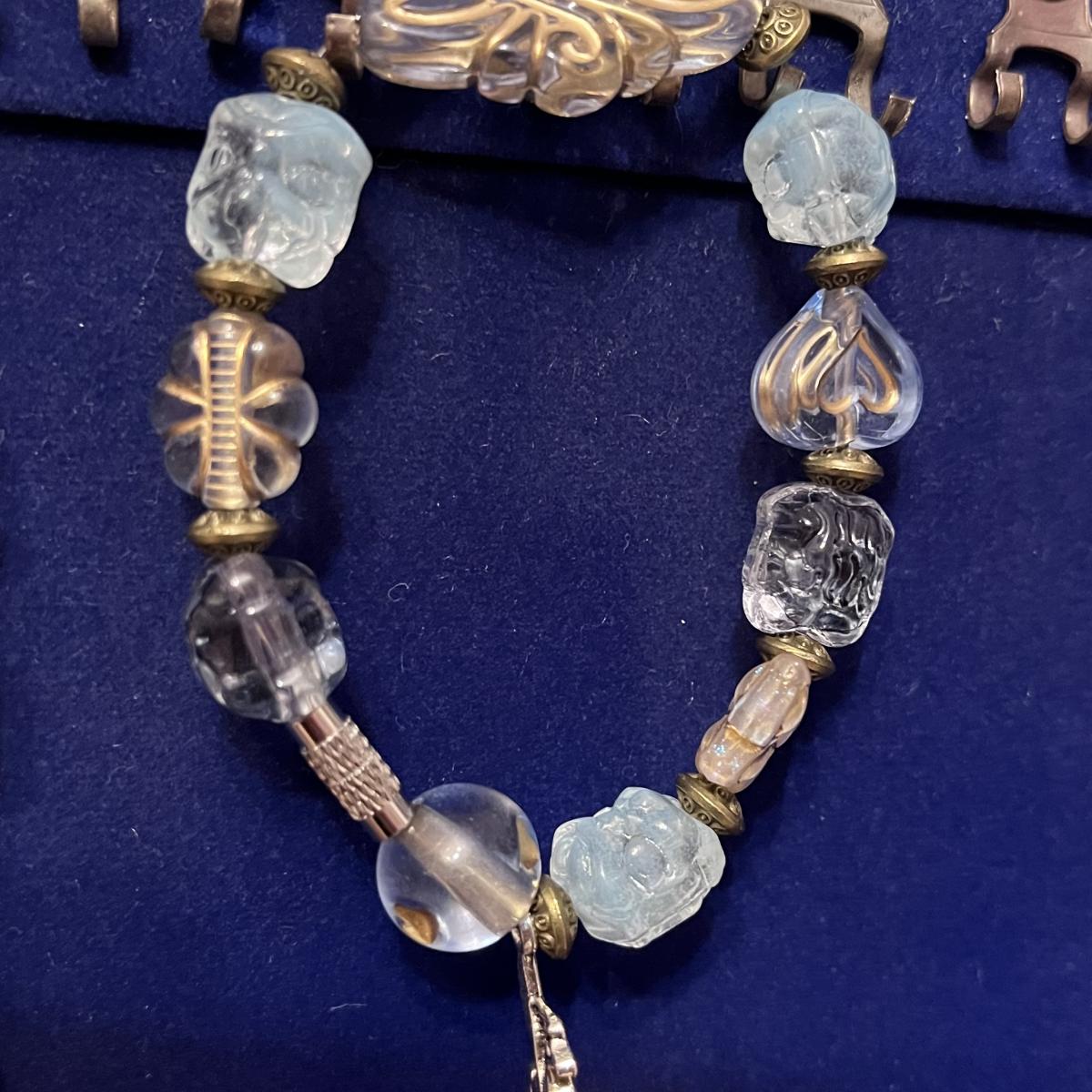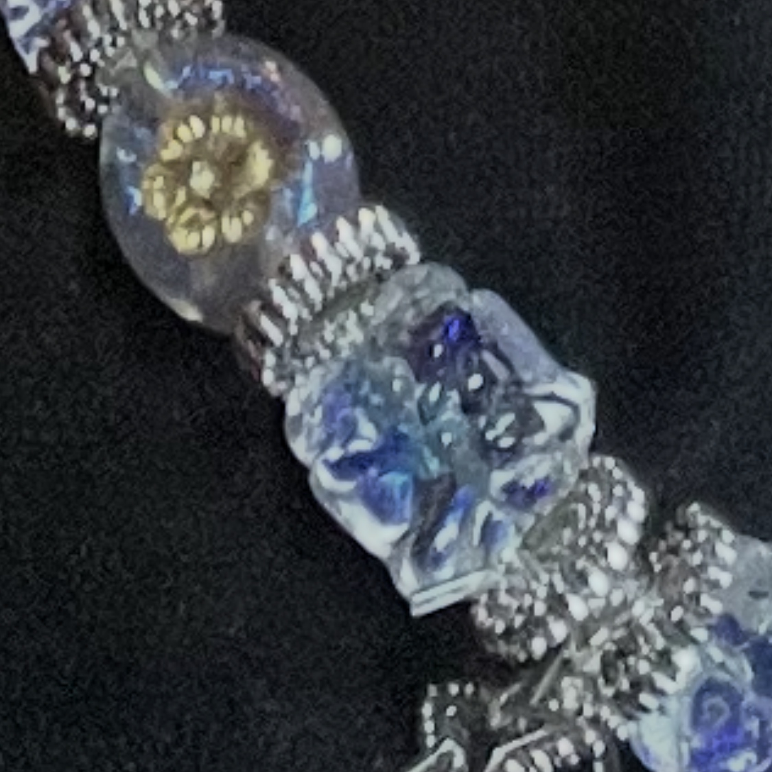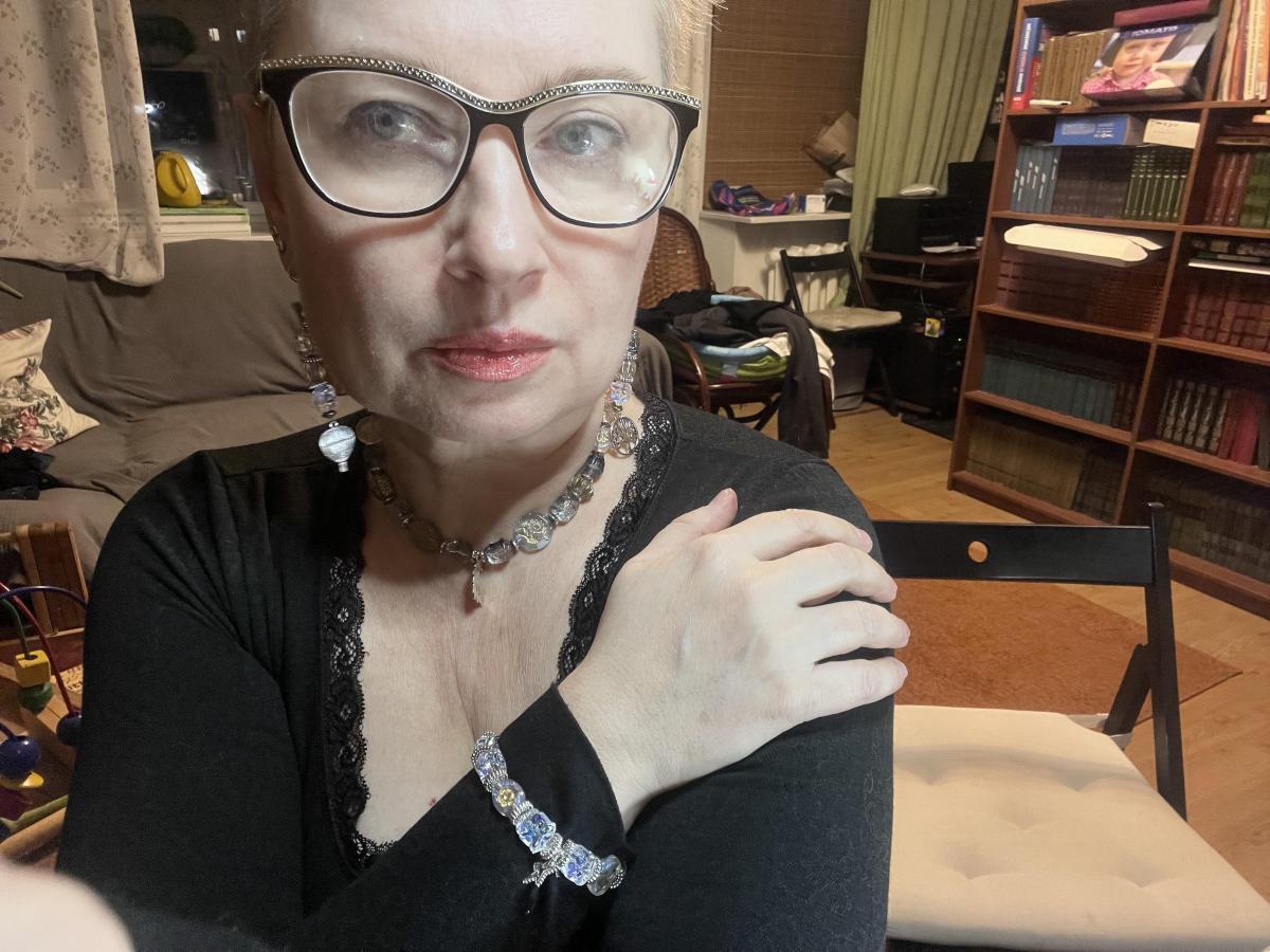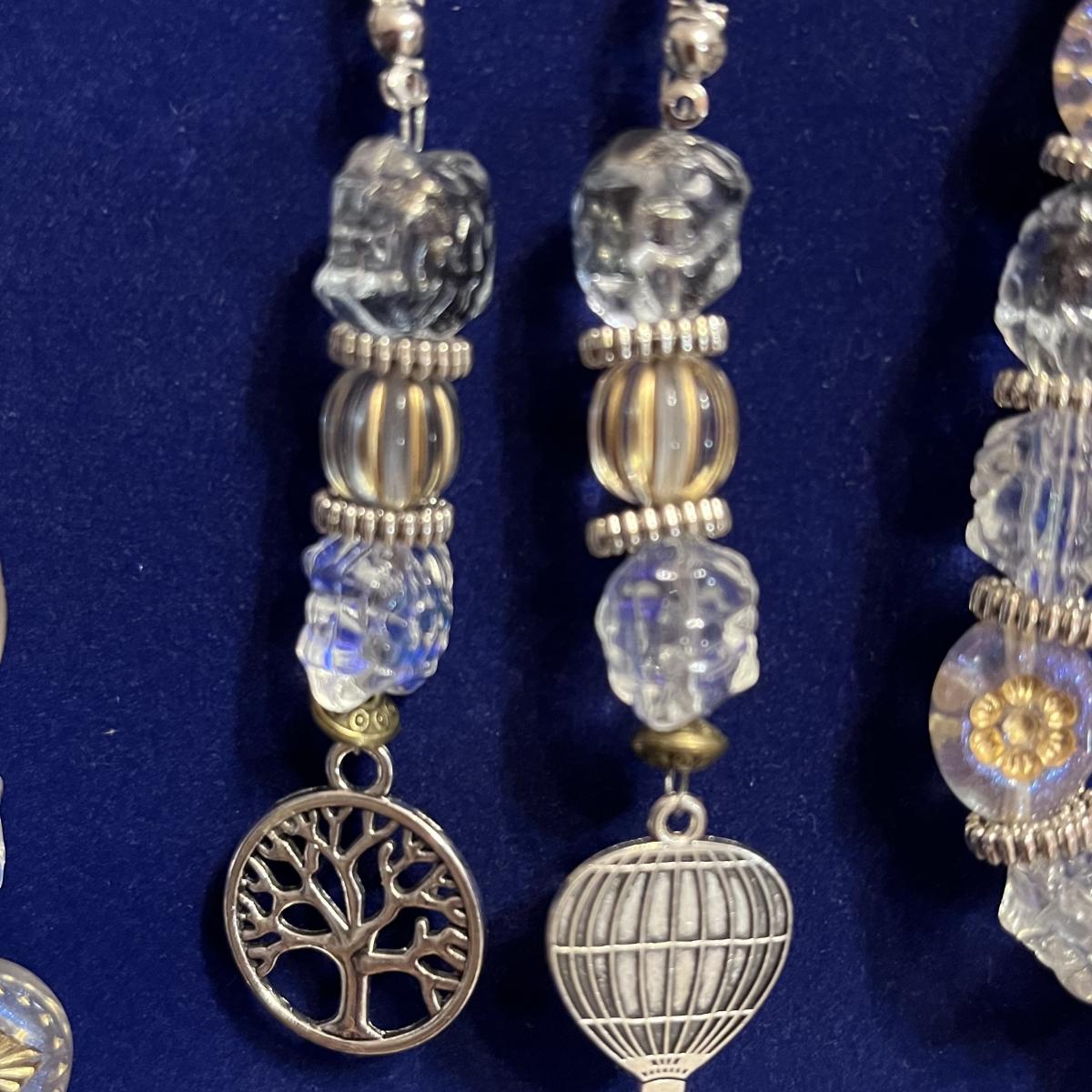 В наличии два комплекта украшений с похожим дизайном. Отличии в оттенке искусственного кварца: один с голубоватым отливом, другой - с антрацитовым. Дизайн навеян суровыми сибирскими морозами, рисующими на стеклах похожие узоры.
