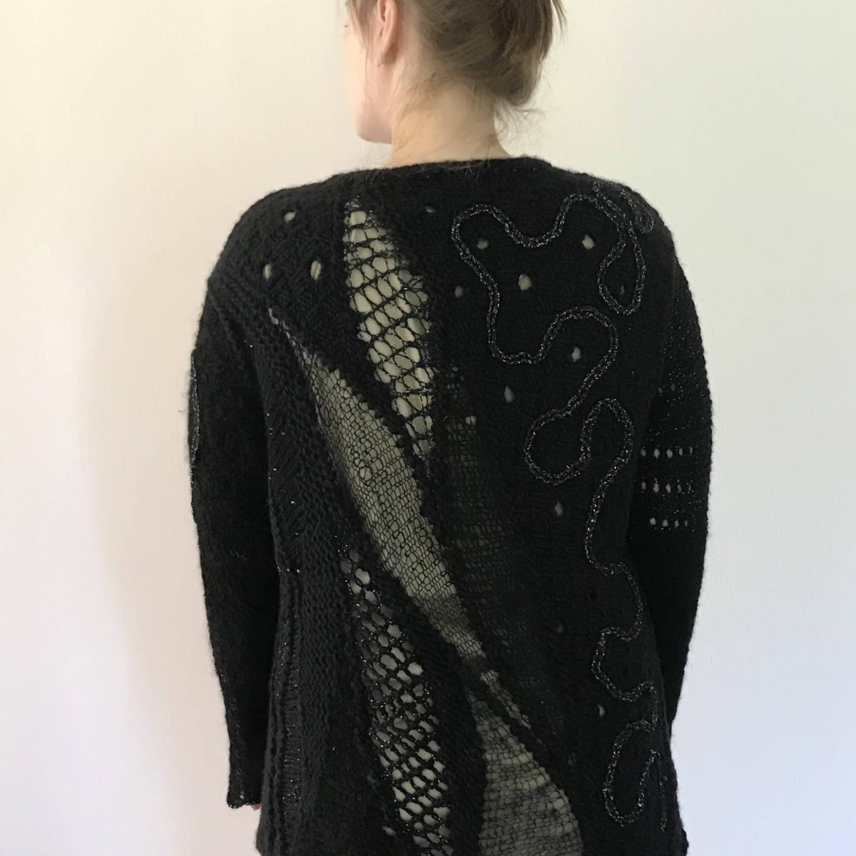 (!)Черный женский джемпер ручной вязки ЧЕРНЫЕ ДЫРЫ