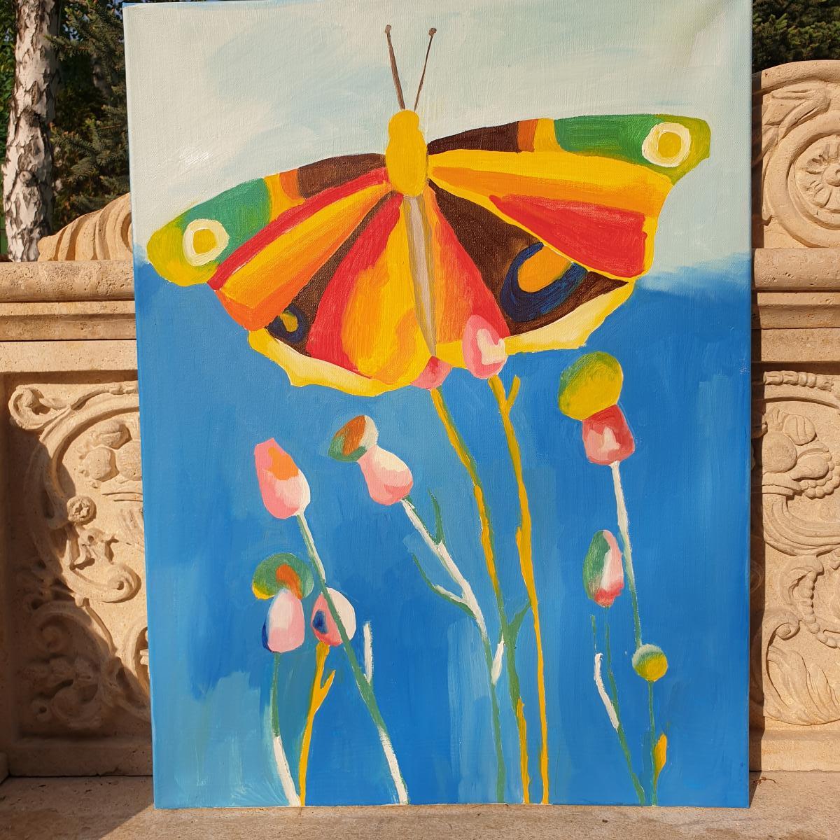 Бабочка в ярких красках, с весенними нотками, я написала движение вверх и стремление к жизни. Бабочка олицетворяет яркие жизненные краски. Необычные цветы творчество. Подойдет как для офиса так и для жилого интерьера, хорошо смотрится на сером фоне, т.к. картина яркая и жизнерадостная. Мои картины отличаются индивидуальным стилем и рукой мастера, выполнены в единственном экземпляре. Картина на стену поможет обновить интерьер, сделать пространство более уютным и добавить стильный акцент в помещении после ремонта.