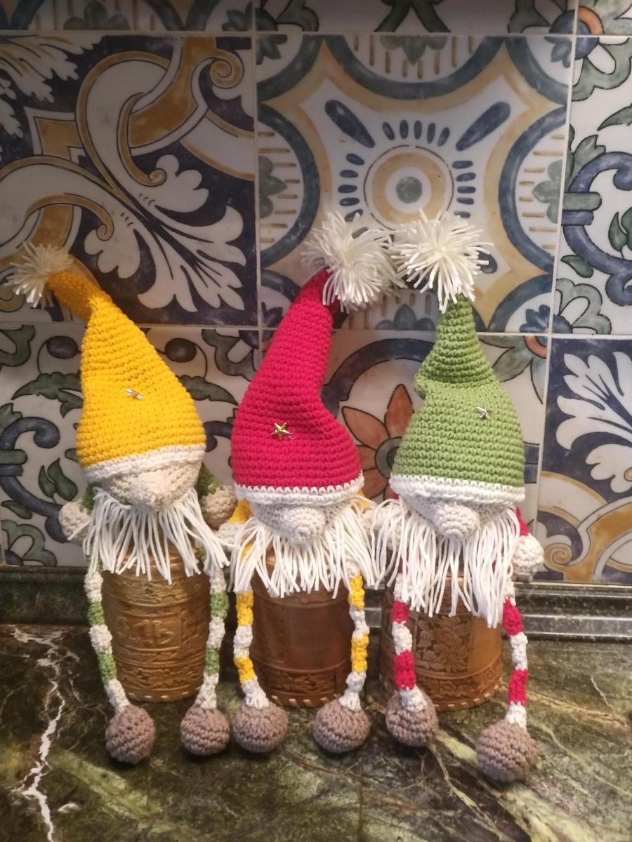 Яркие и красочные рождественские гномы, которые могут являться замечательным декором Вашего интерьера или игрушкой для ребенка. Все сделано из экологически чистых материалов.