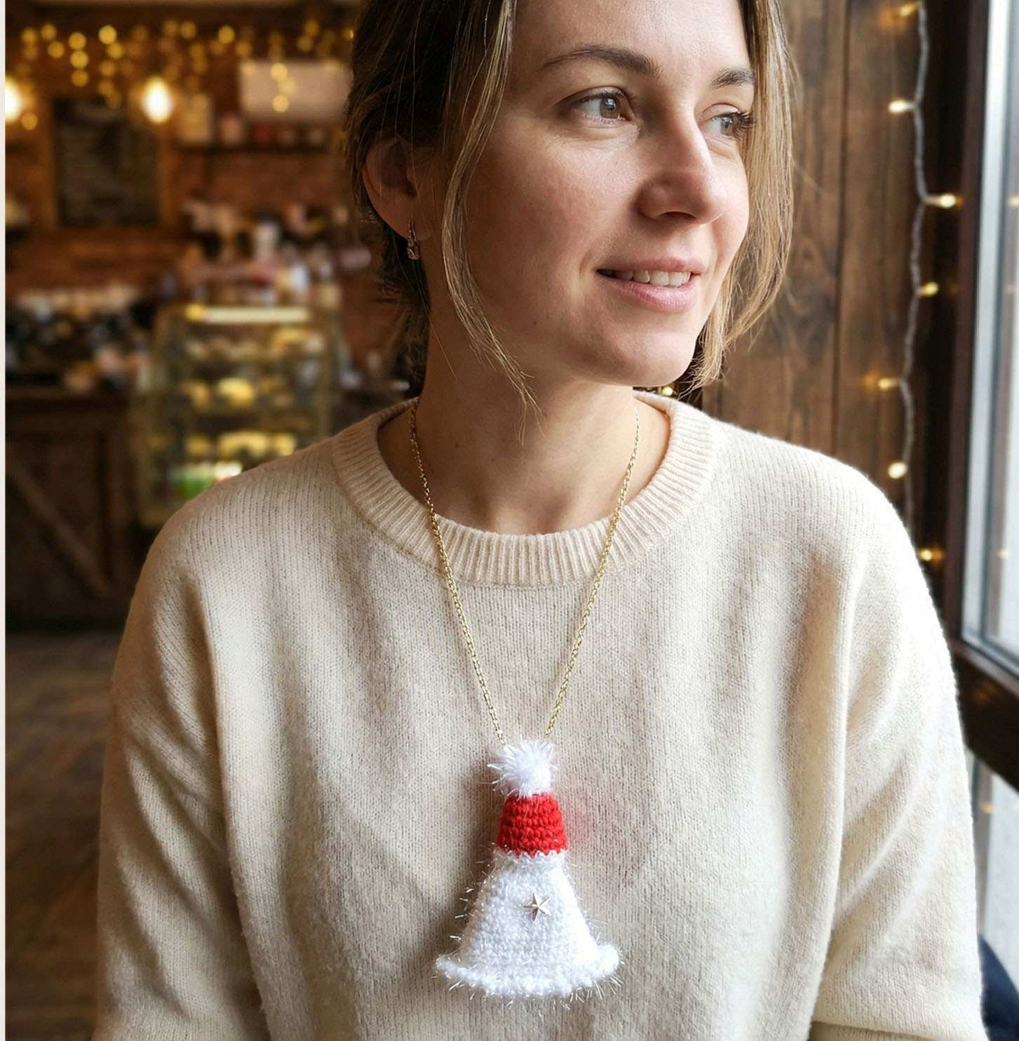 Замечательная белая елочка-кулончик, подойдет к новогоднему костюму или снегурочке)