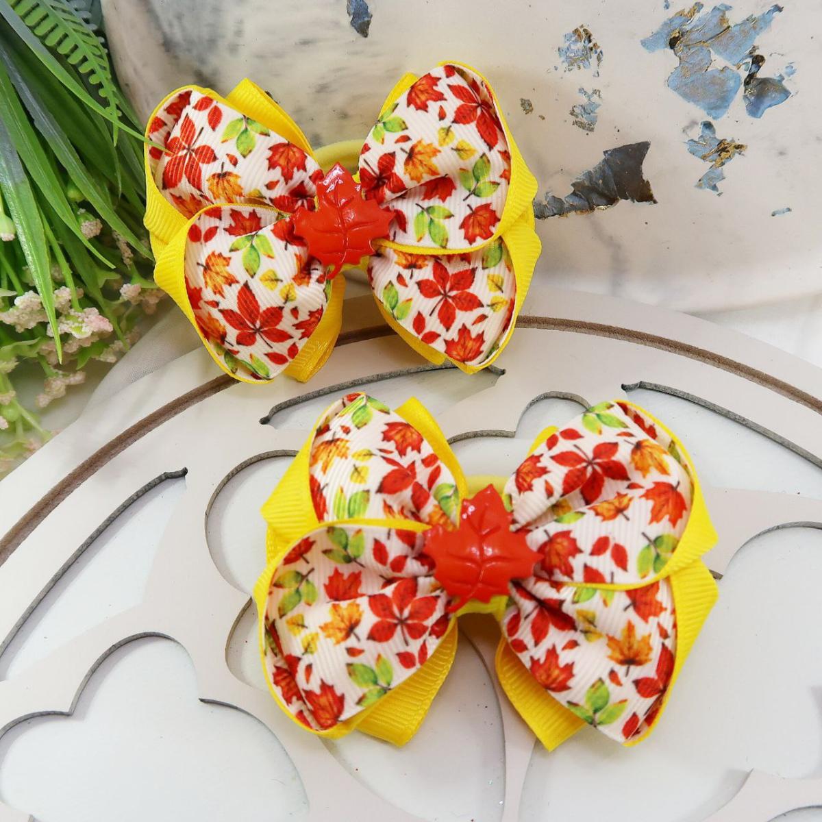 ОСЕННИЕ БАНТИКИ станут идеальным дополнением прически, образа или наряда на праздник осени. Оригинальный принт репсовой ленты, с разноцветными листьями, поднимет настроение и сделает любой день ярче! Традиционные цвета осени соединились в этих красивых бантиках для волос.
