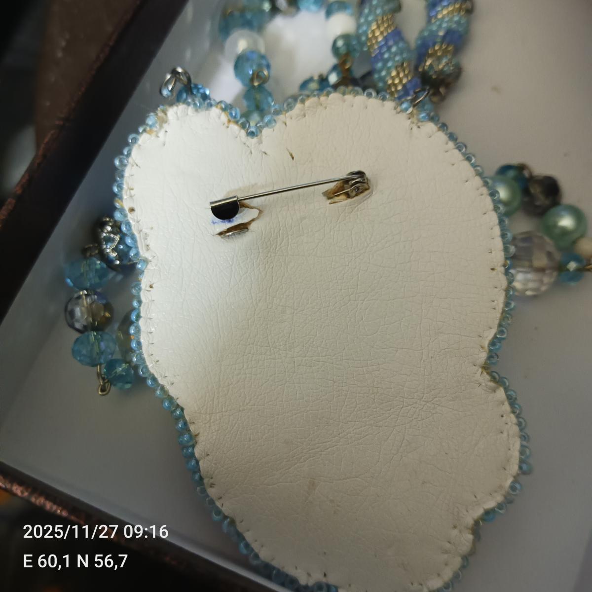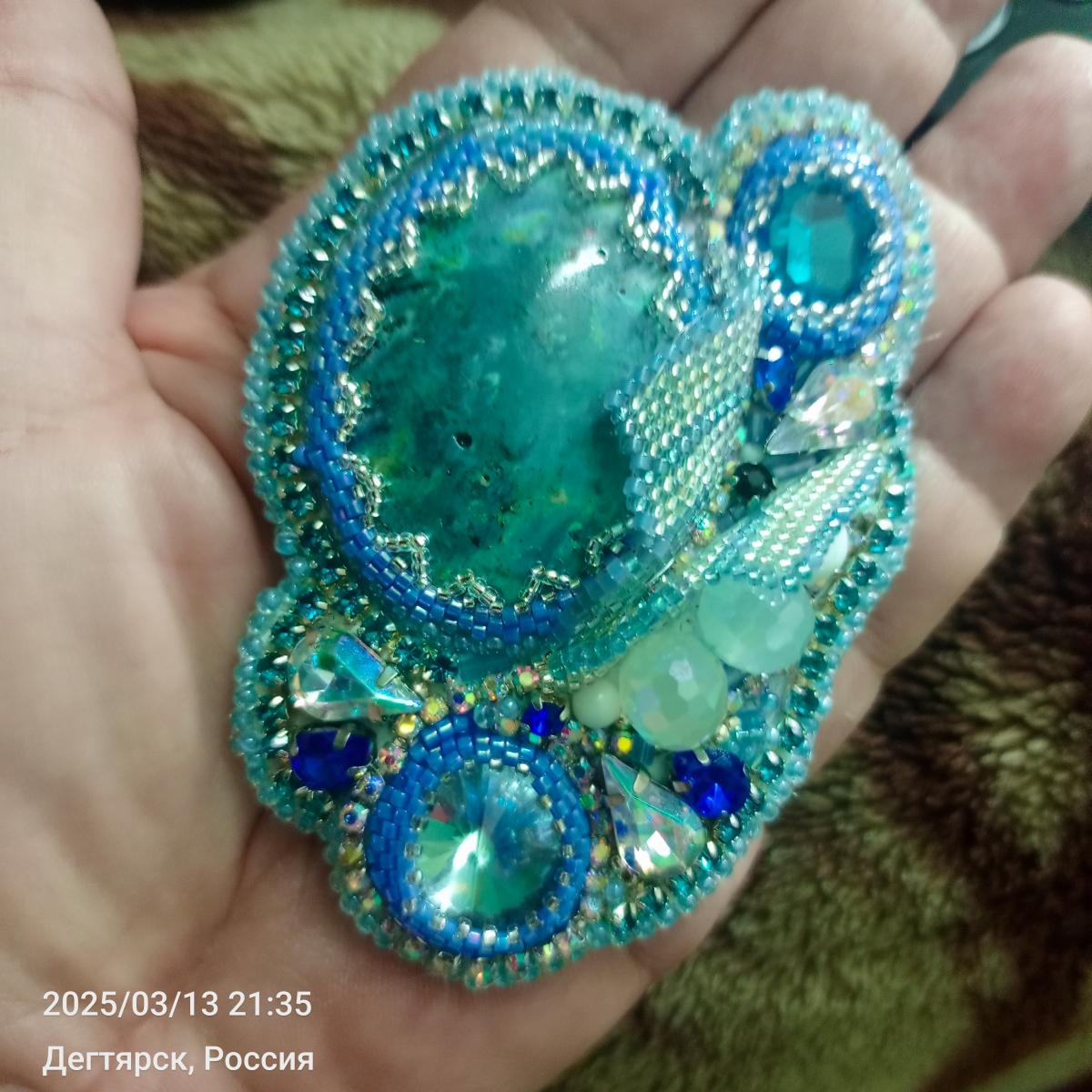 Брошь ручной работы из японского бисера с кабошоном ручной работы и стразами Сваровски .Цепочка из бисерных бусин ручной работы , из жемчужных и стеклянных бусин.Обратная сторона из итальянской эко-кожи , фурнитура металлическая. Красивый подарок и великолепное украшение.