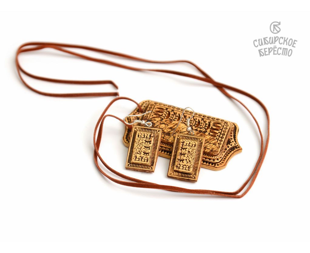 Комплект сережки и подвеска из бересты