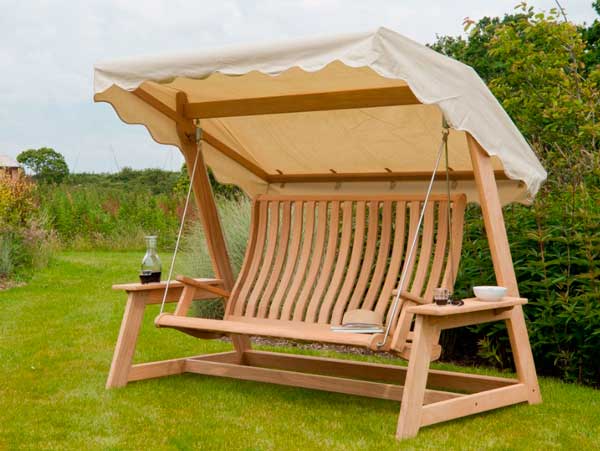 Дерево — самый популярный материал для изготовления садовой мебели. Оно легко обрабатывается, долго служит и создает ощущение природной гармонии. Примеры популярных решений: