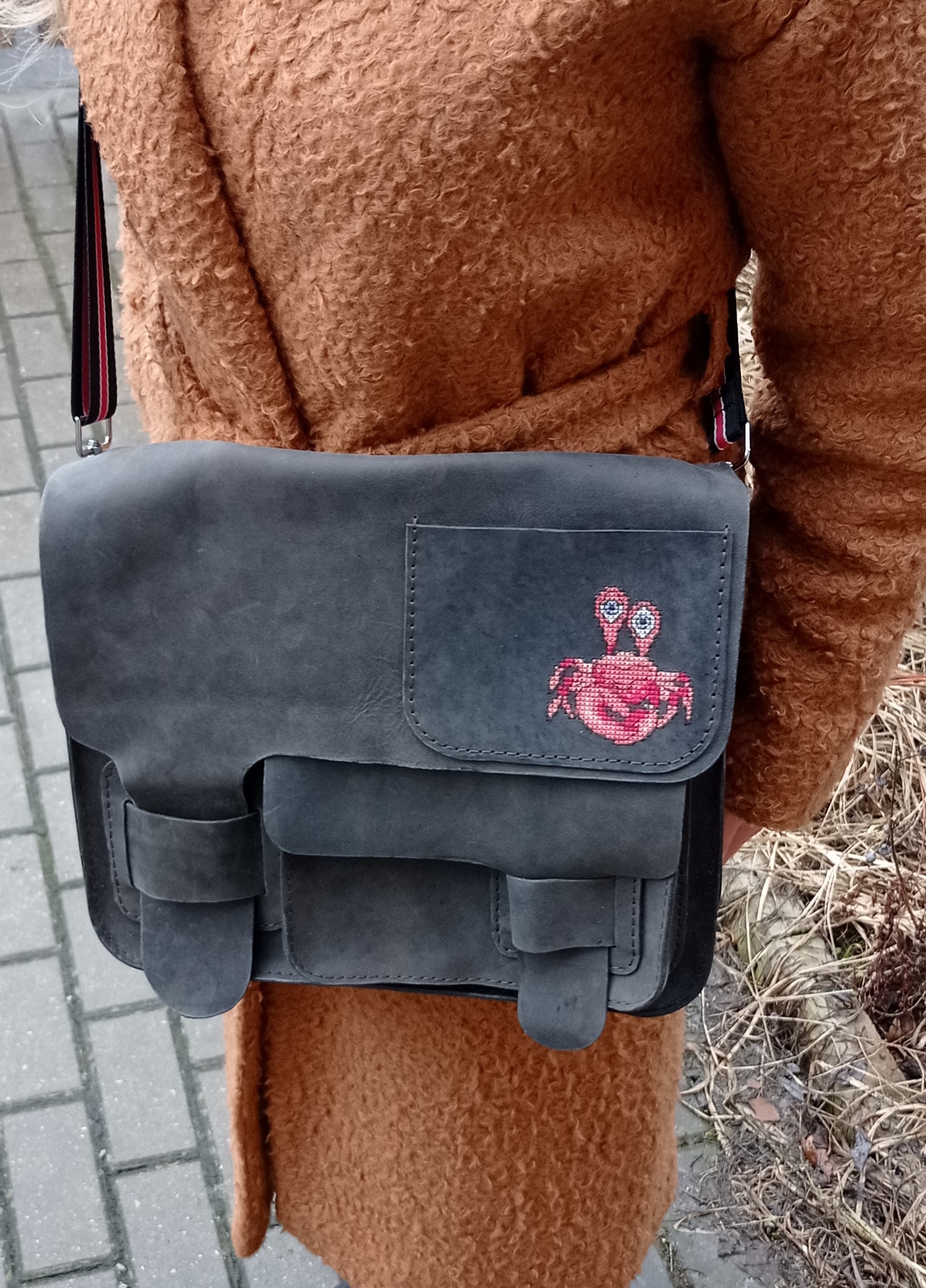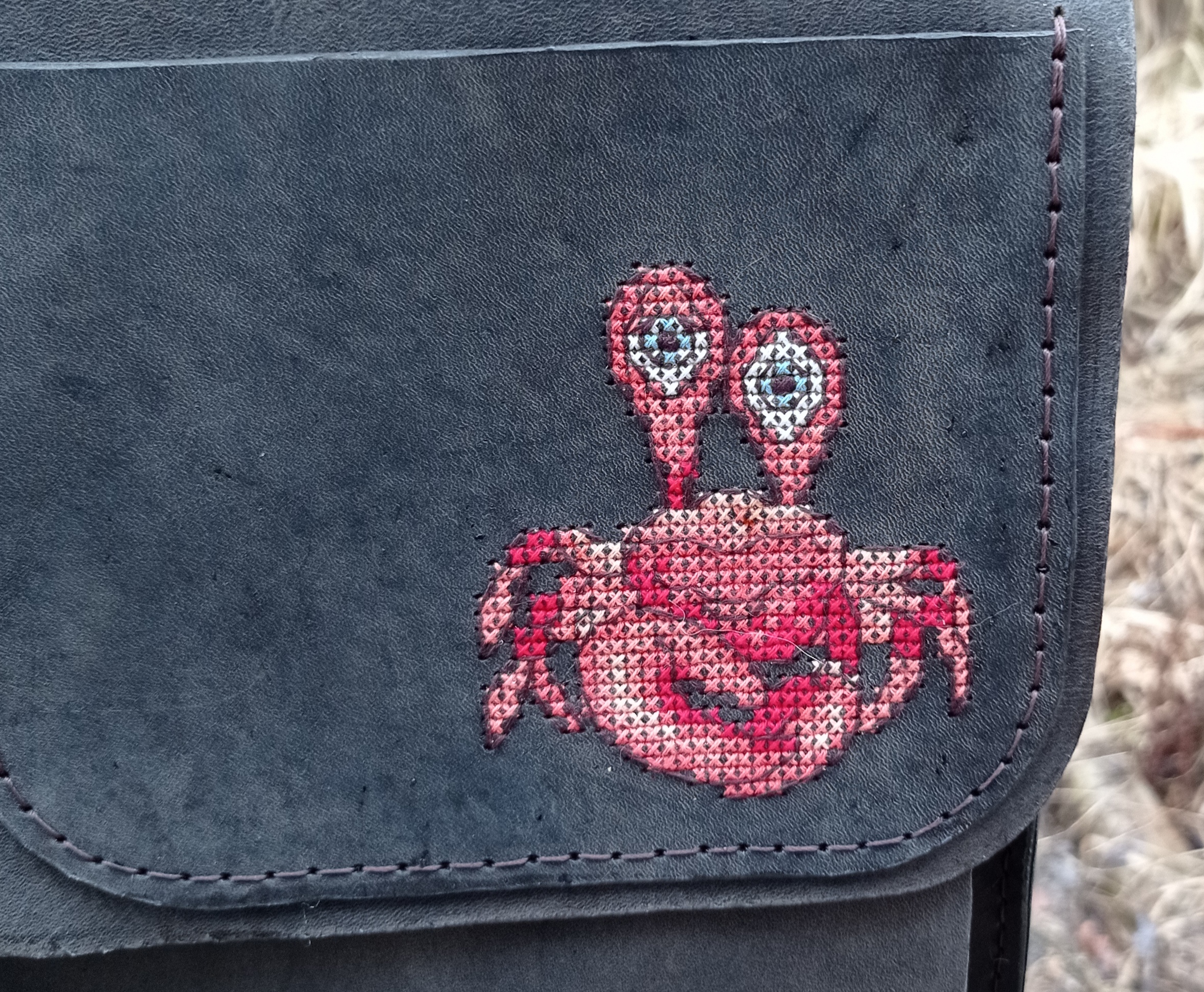 Декорирование внешнего кармана вышивкой в виде краба выделит владельца сумки из толпы и подчеркнет вашу индивидуальность. Краб – символ упорства, стойкости и решимости, а также символизирует богатство и достаток.