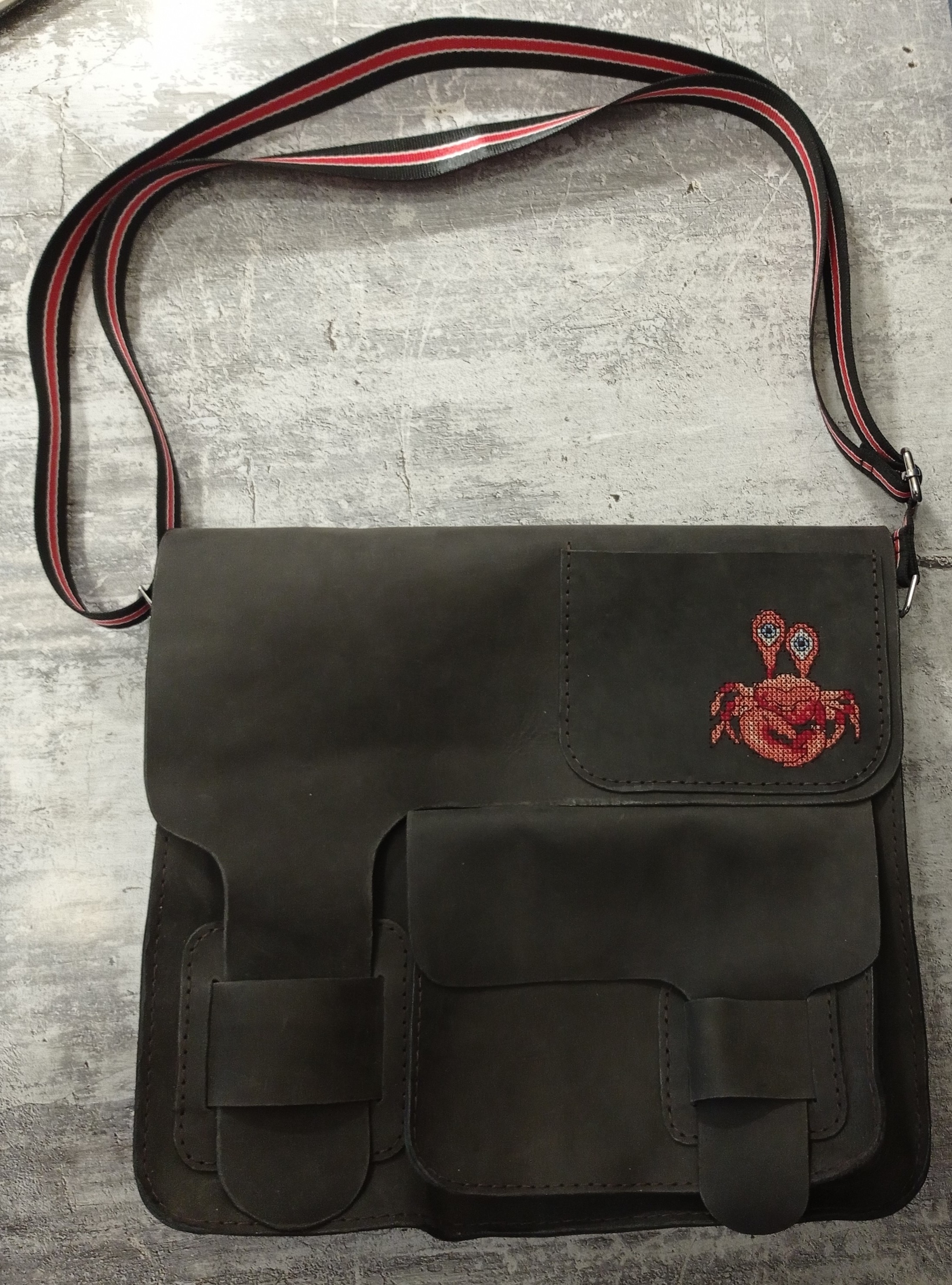 Сумка ручной работы из натуральной кожи с вышивкой с двумя отделениями, двумя внешними и тремя внутренними карманами. Унисекс. Сумка в единственном экземпляре, без повторов.