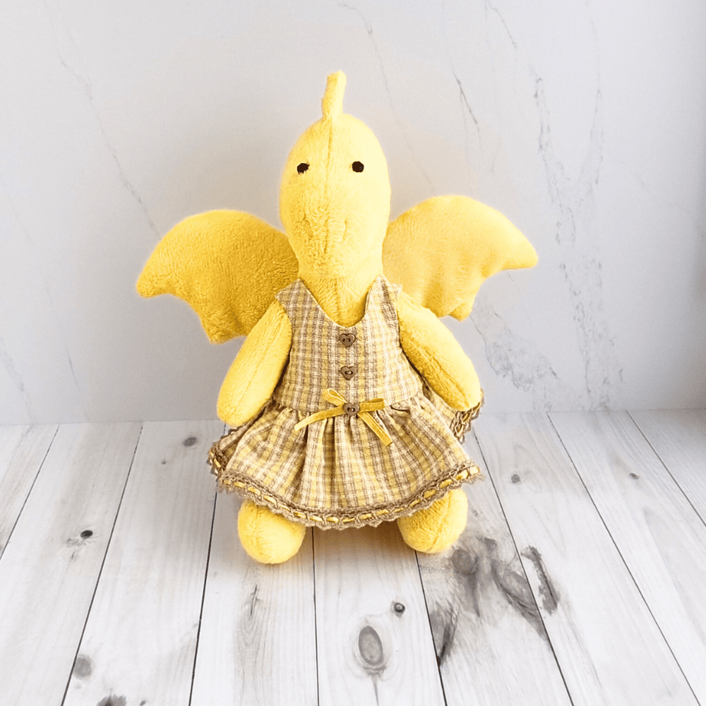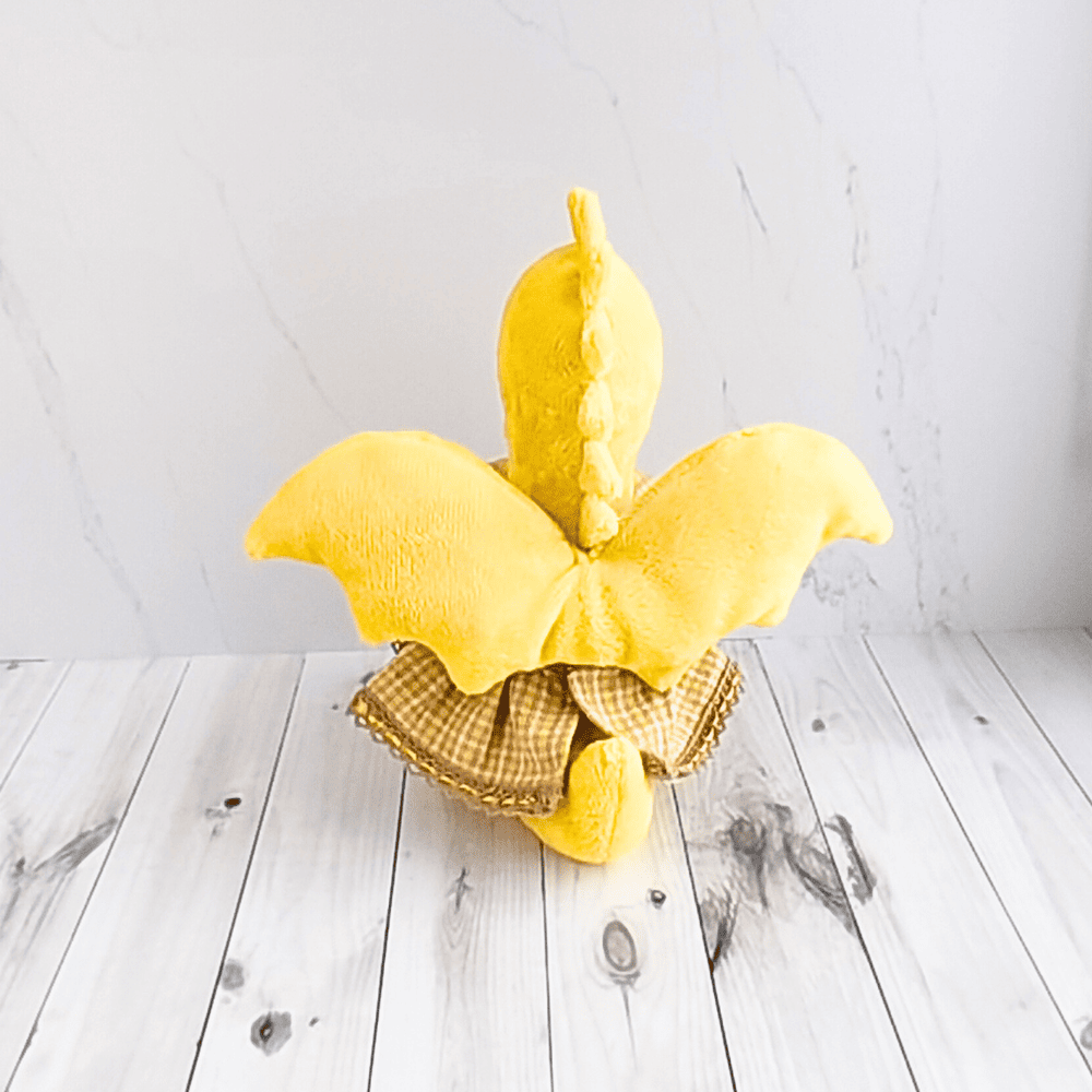Изделие сделано из плюша, набито холлофайбером, крылья и платье сьемное, лапки и ножки пришиты на пуговках. Дракончик стоять не может , только сидит, в единственном экземпляре, повторений невозможно.