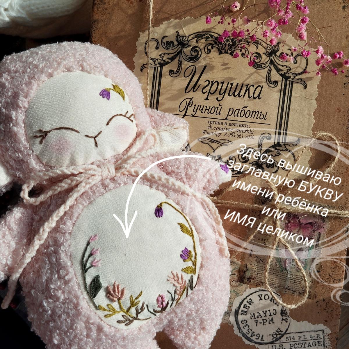 Игрушка Овечка ручной работы для малышей и взрослых. Размер 24 см.На животике дополнительно вышью ИМЯ целиком или заглавную БУКВУ вашего ребёнка, именинника, или другое любое слово по желанию (крестнице, внучке, доченьке, сыночку, хочу на ручки, с любовью, обними меня, I live you ...).