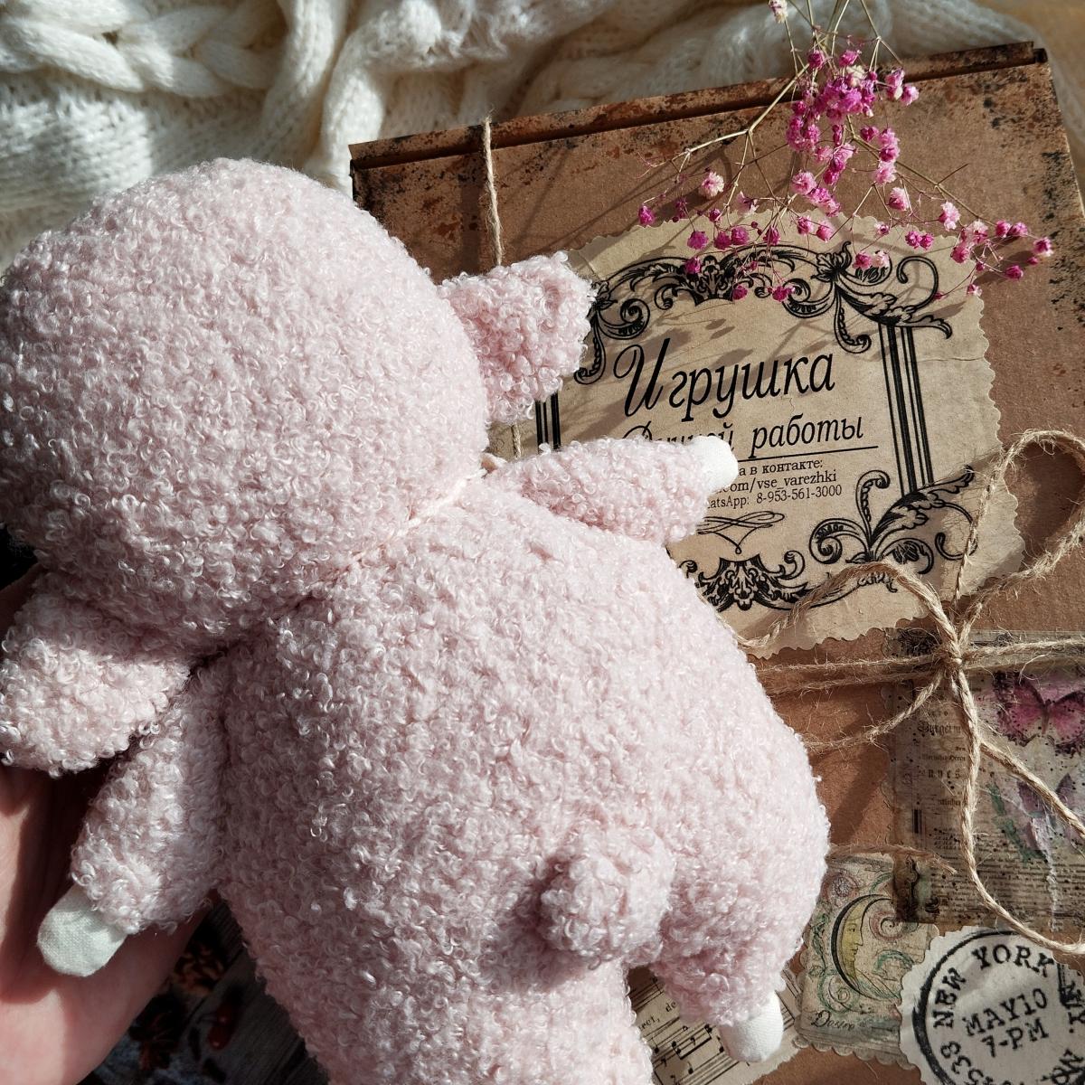 Мягкая и очень тактильная за счет меха букле и хлопка, набита синтепухом.