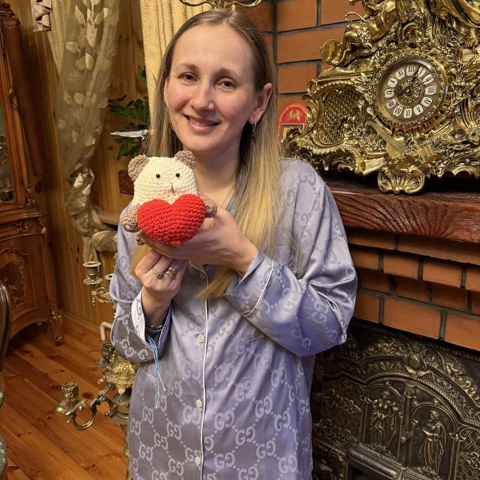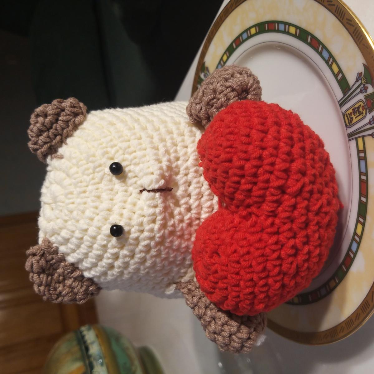 Замечательный котик с сердечком из хлопковой пряжи, идеально подходит для детей.