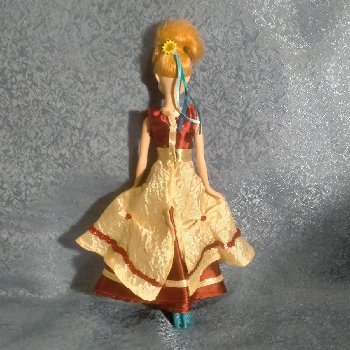 Платье для куклы Анны из мультфильма "Холодное сердце". Малиновое с двойным подолом, подол украшен драпировками и пайетками. Застегивается на кнопки (пришивные). Для игры детям любого возраста (делям, которые могут отгрызть мелкие детали не рекомендую). Одежды для кукол много, заходите на мою страничку. При покупке от 3 нарядов подарок (на мое усмотрение). ВНИМАНИЕ - кукла не продается!