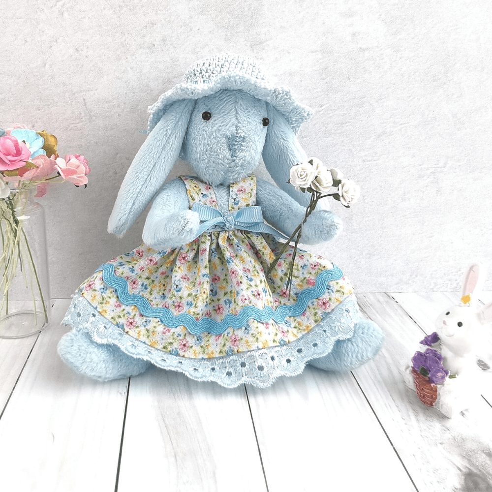 Зайка из плюша, сделан в технике тедди,одежда съемная,сарафан сшит из х\б и украшено тесьмой, атласной лентой, бисером, панама связана из ниток ириса, глазки из бисера, нос вышит из ниток мулине.Высота изделия 18см.Материалы: плюш, сатин, ирис, тесьма , атласная лента.Изделие рекомендуем на подарок своим близким и для интерьера дома и дачи. Игра с плюшевым заей открывает множество возможностей для развития воображения, творческого мышления и социальных навыков. Дети могут придумывать разные истории, создавать сценарии для игр и развивать моторику рук при одевании зайки. Также с помощью зайки можно обучать детей основам ухода за игрушками и развивать ответственность. Рекомендации по уходу: только сухая чистка для тела зайки, платье можно стирать, используя гель для душа или шампунь, не выкручивать, не выжимать, сушить в расправленном виде на чистом сухом полотенце, утюжить паром, для панамы используйте сухую чистку.