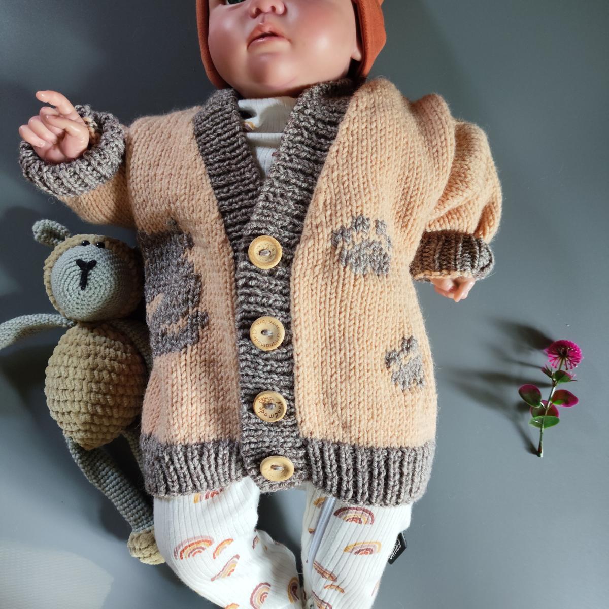 Кардиган связан из полушерстяной пряжи "Пехорка мериносовая".на фото размер 68-70.свяжу на заказ в любом цвете.размерный ряд на рост от 68см до134см
