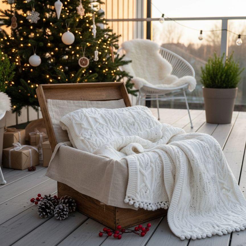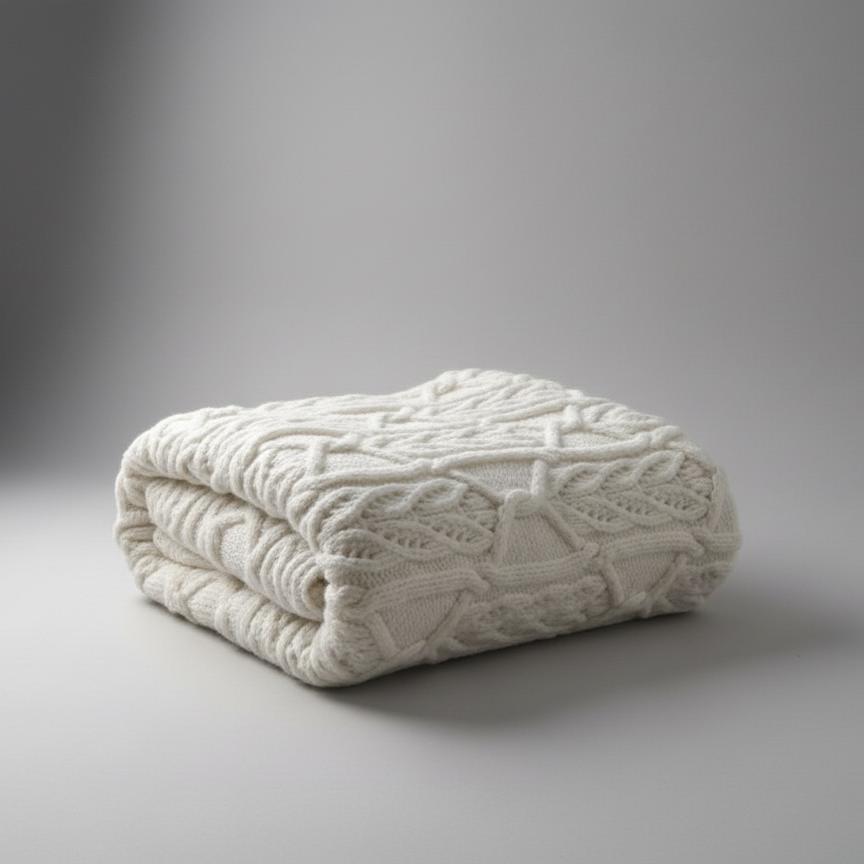 Плед ручной работы. Белый. Размер 134 на 124 см. Связан из высококачественного итальянского мериноса, тактильно очень нежный и тёплый. Автор рисунка - японский дизайнер Хитоми Шида. Подарочная упаковка.