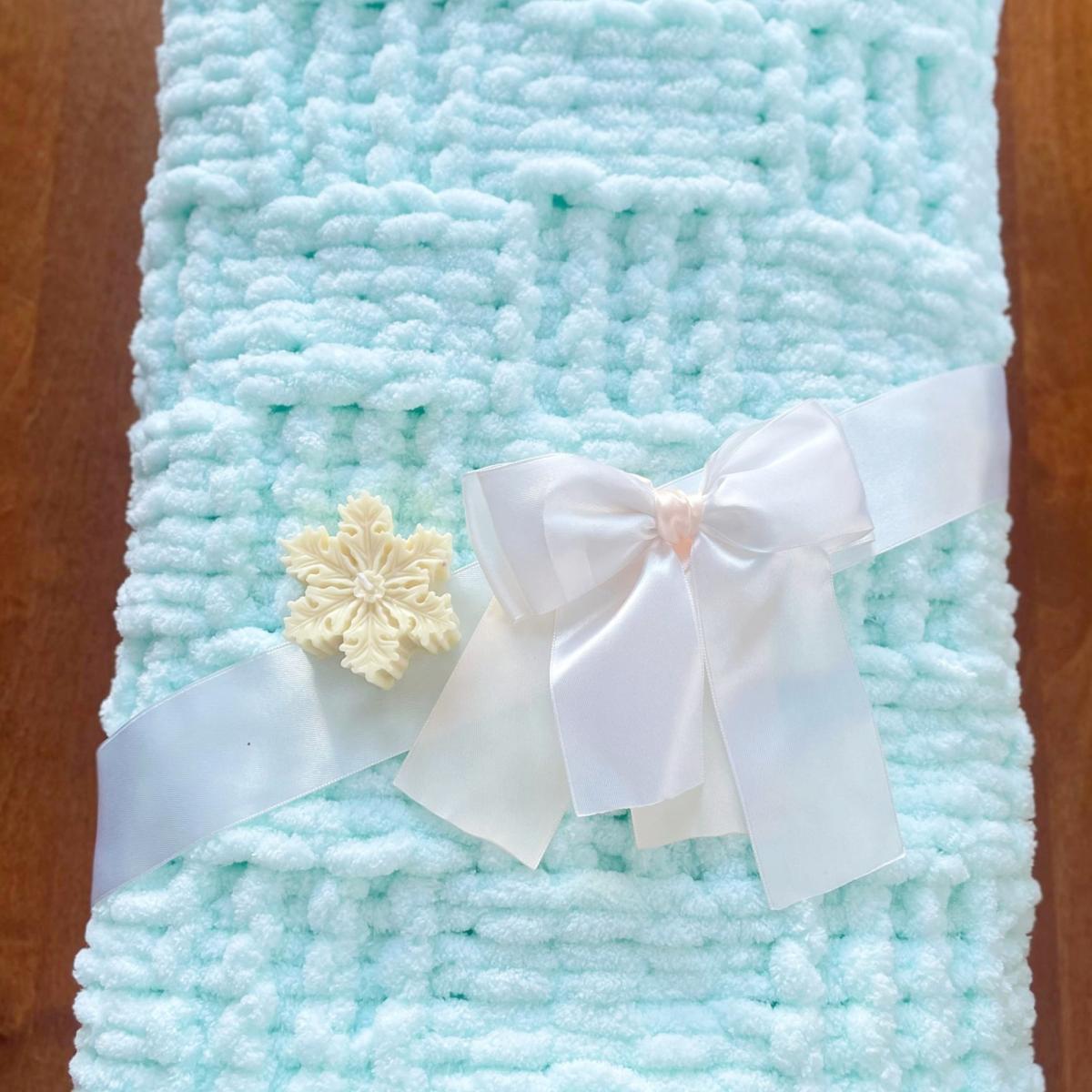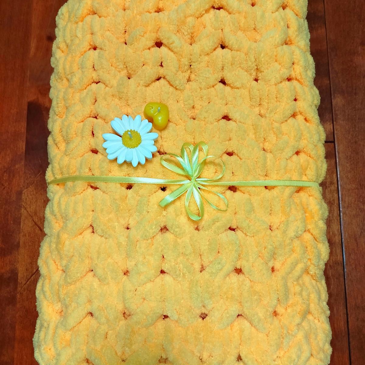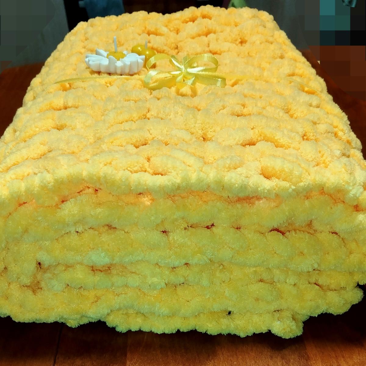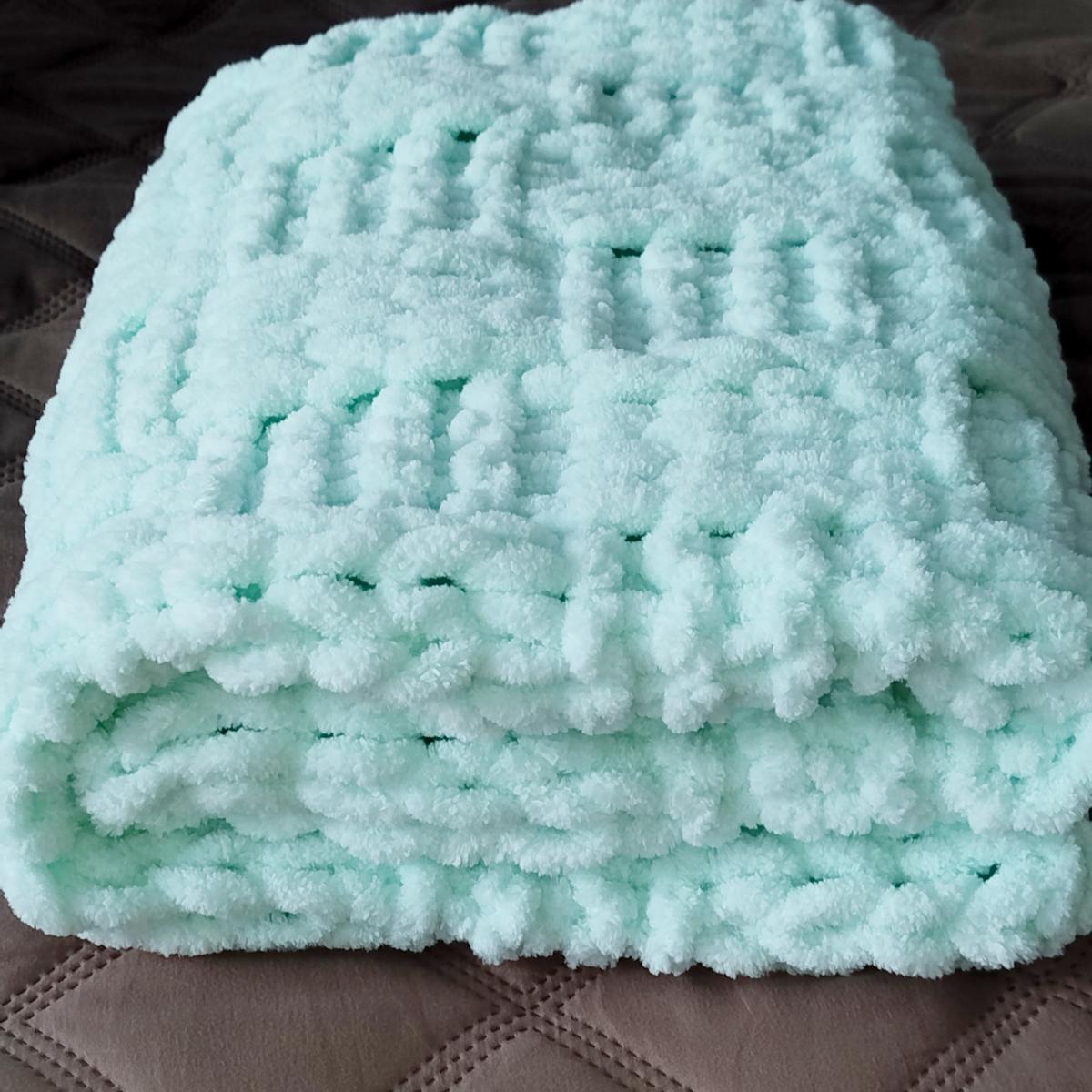 Пледы ЯРКО-ЖЕЛТЫЙ как солнышко, мягкий как облако для малыша 80*87см и НЕЖНО-БИРЮЗОВЫЙ 97*80 см из Alize puffy (крупные петли) - 1550₽