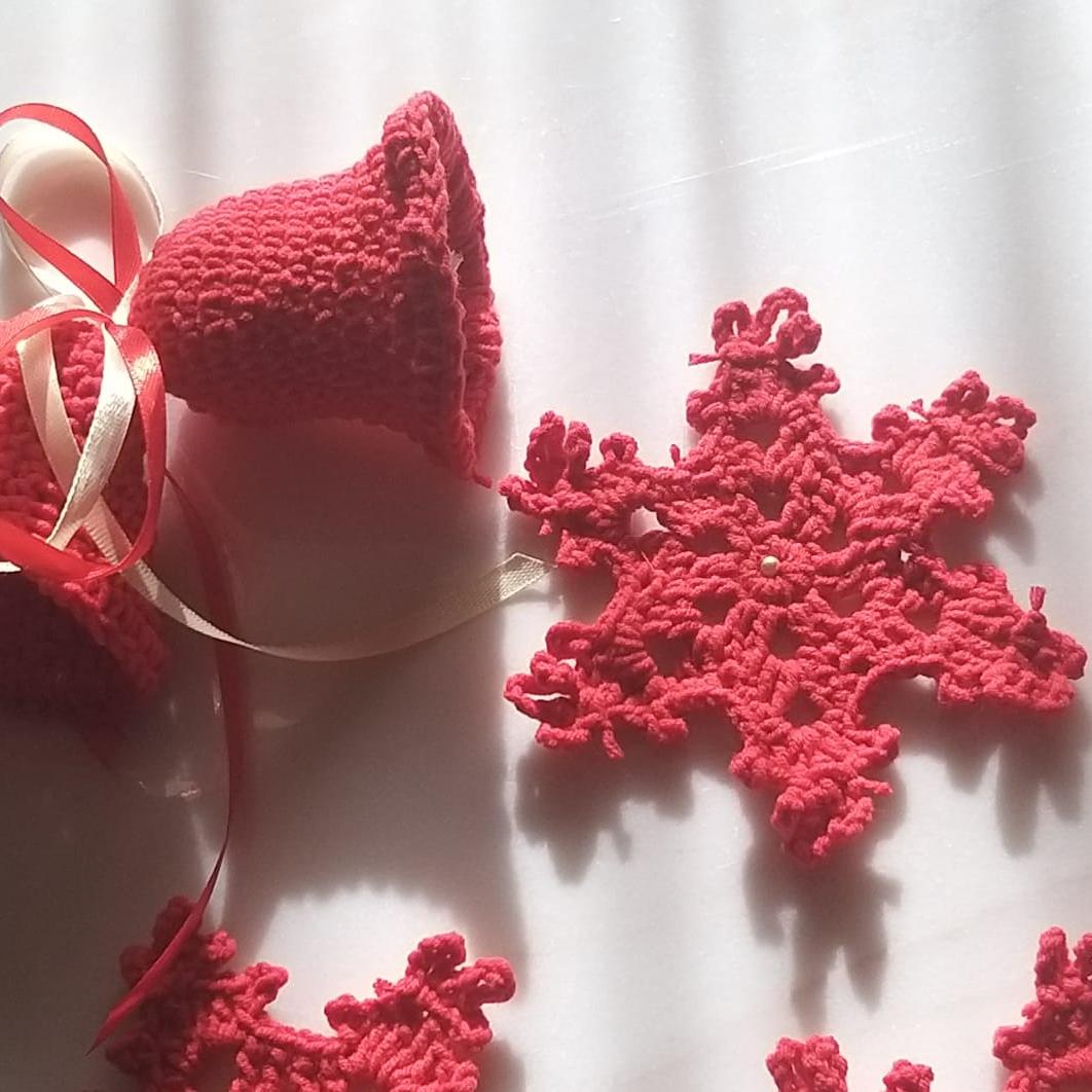красные снежинки и колокольчики
