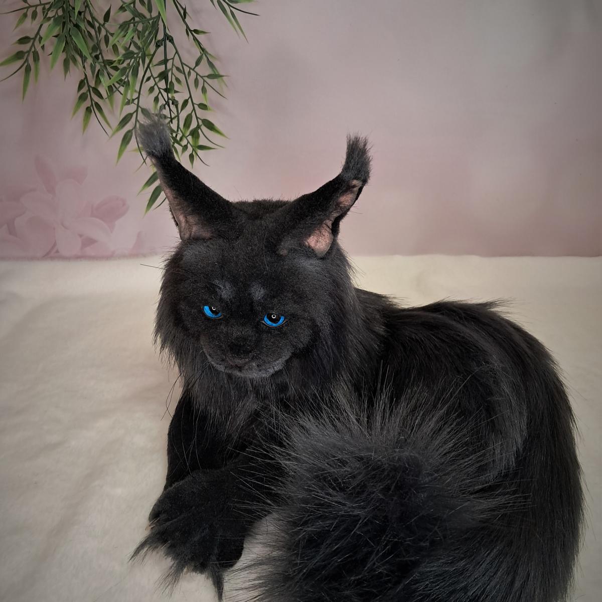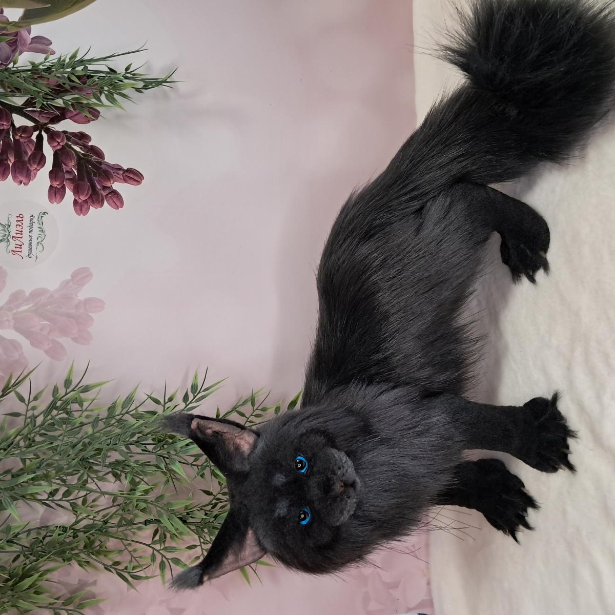 Изготовлен вручную из 100% высококачественного искусственного меха. Тонировка акриловыми красками на водной основе. Внутри игрушки находится скелет, благодаря которому она может принимать различные позы, сгибать лапы и хвост. Утяжеленный стеклянным гранулятом (для приятного веса), набитый синтепоном. Уши укреплены проволокой, можно менять положение. Нос, когти и подушечки лап сделаны из запекаемого пластика. Глаза сделаны из стекла. От кончика носа до основания хвоста примерно 35 см. В новый дом придет в подарочном наборе ( игрушка, паспорт на игрушку, сувенир, все в подарочной коробке)