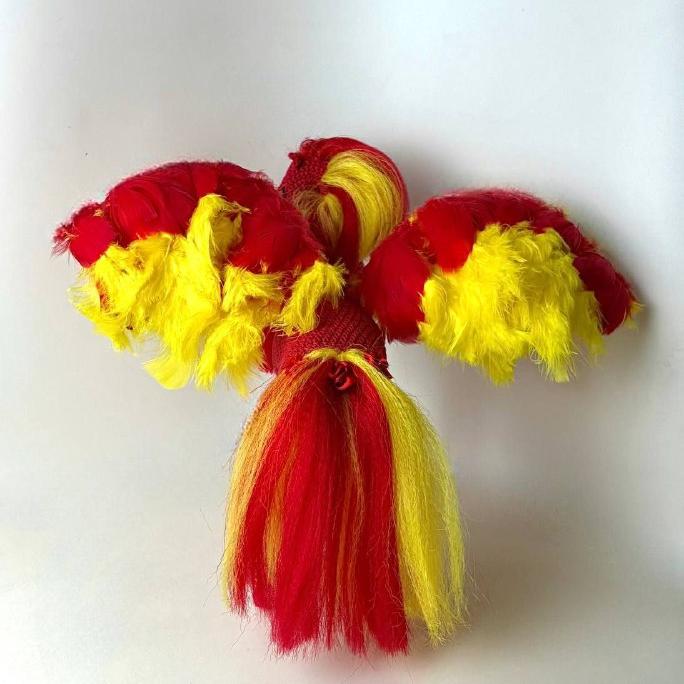 Крылья на проволочном каркасе, декорированы перьями. Глаза-стеклянные кабошоны.
