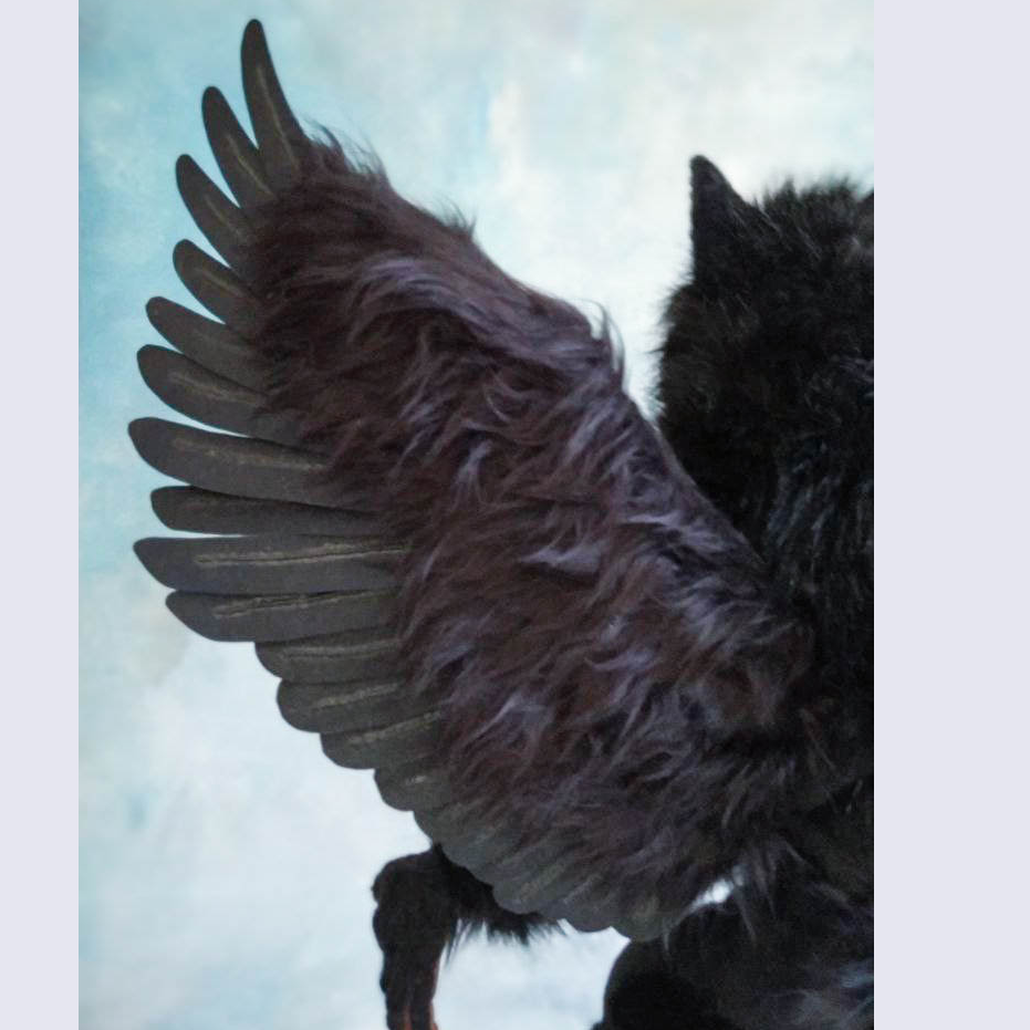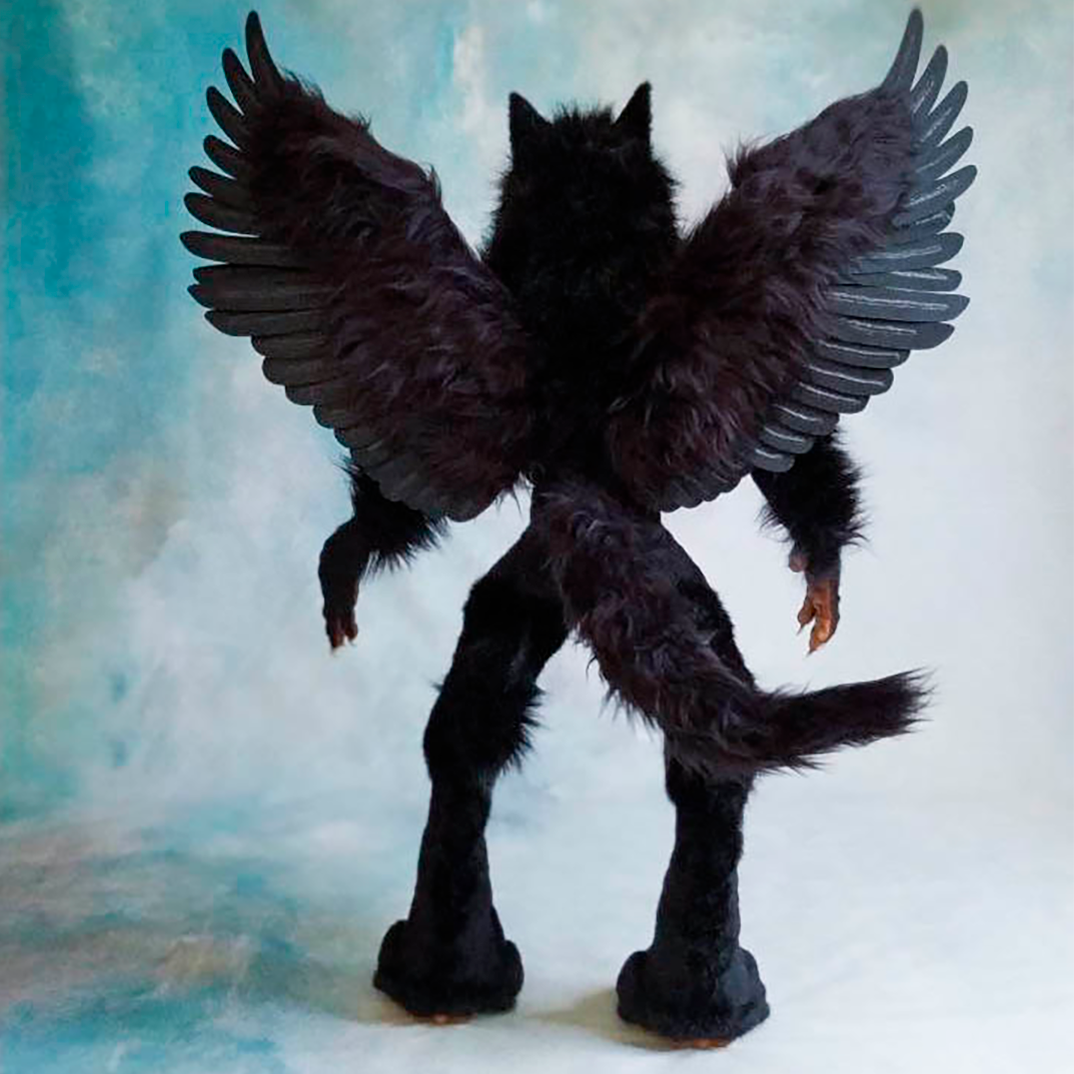 Высота куклы – 98 см, размах крыльев – 97 см, что делает ее внушительной скульптурой для гостиной или коллекционной полки.