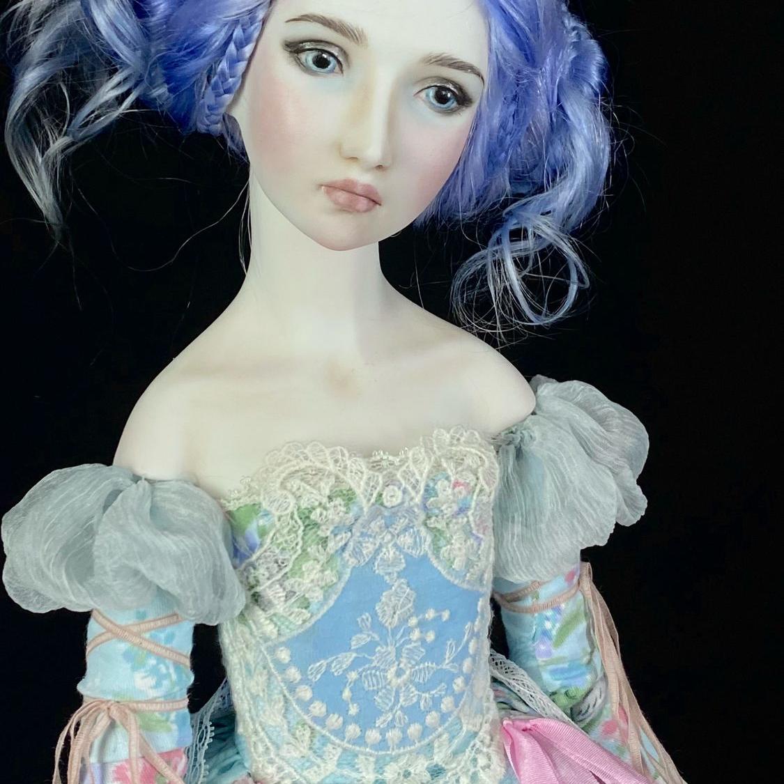 Мальвина — сказочная муза света и лёгкости Высота 52 см. Фарфорный идеал детской мечты с яркими голубыми локонами, окутанными нежными тканями и кружевом. Она завораживает изяществом, наполняет пространство вдохновением и поднимает настроение — как луч солнца в коллекции.
