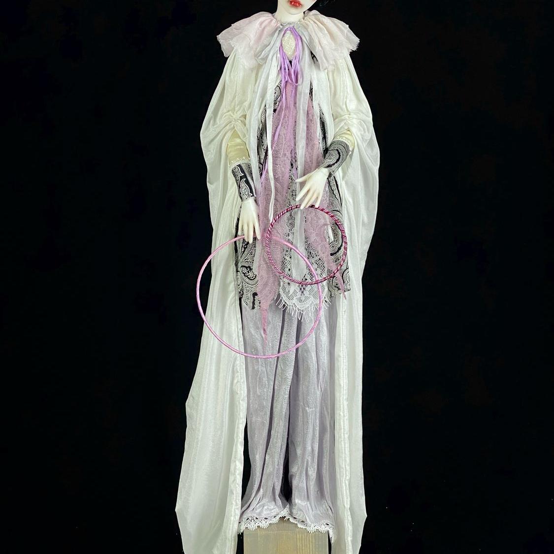 Пьеро — поэт меланхолии в бисквитном фарфоре Высота 60 см. Бисквитный фарфор передаёт глубину трагикомедии: длинные рукава-крылья раненой птицы, усыпанные изысканным шёлком и кружевом. Эмоциональный арт-объект для ценителей тишины и раздумий — нежный спутник, шепчущий о глубоких чувствах.