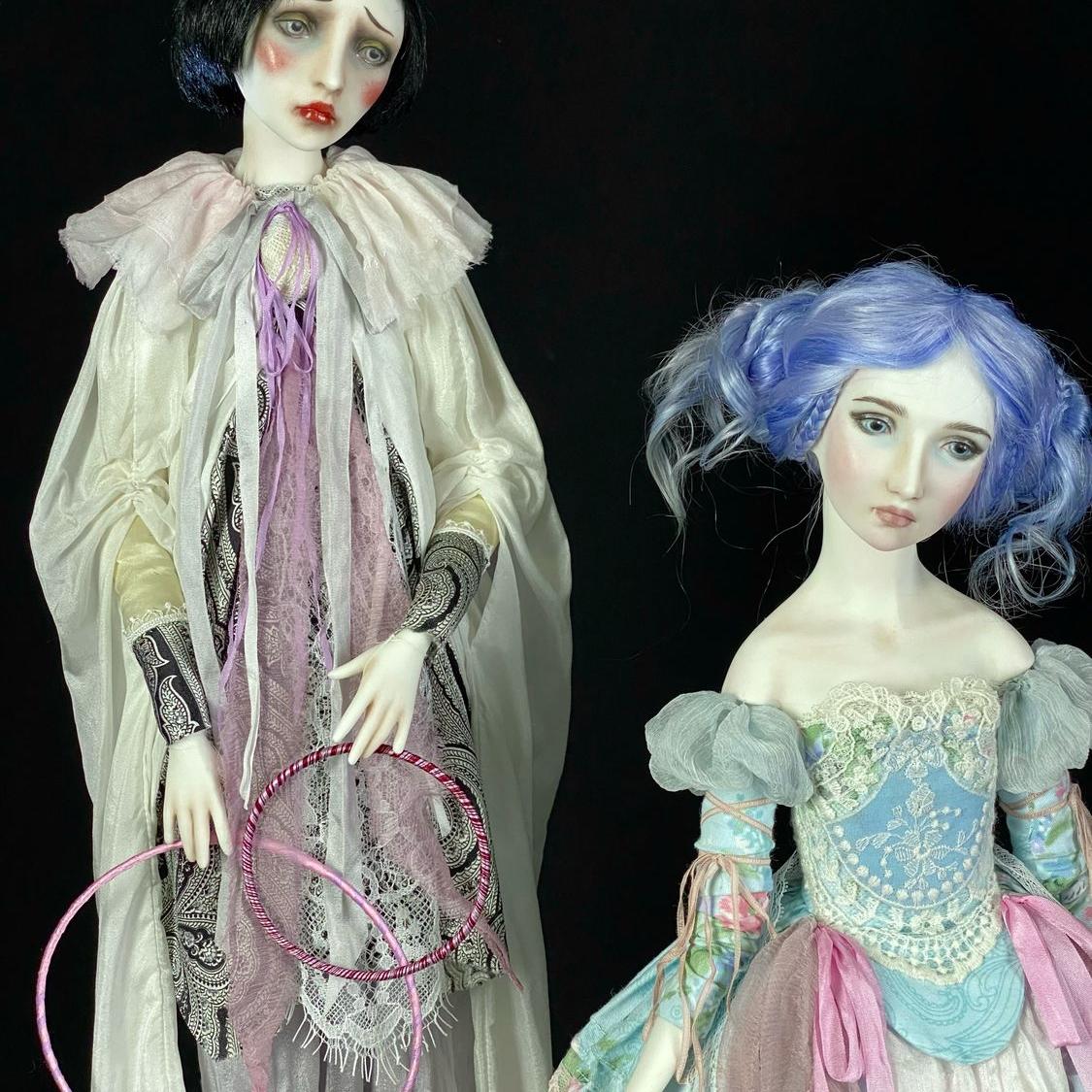 Коллекционные фарфоровые куклы «Пьеро» и «Мальвина» — дуэт меланхолии и сказки в фарфоре