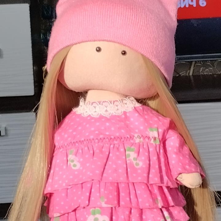 Текстильная очаровательная малышка с поворотными ручками, ножками и головушкой с шикарной копной красивых волосиков ищет заботливые, любящие ручки.