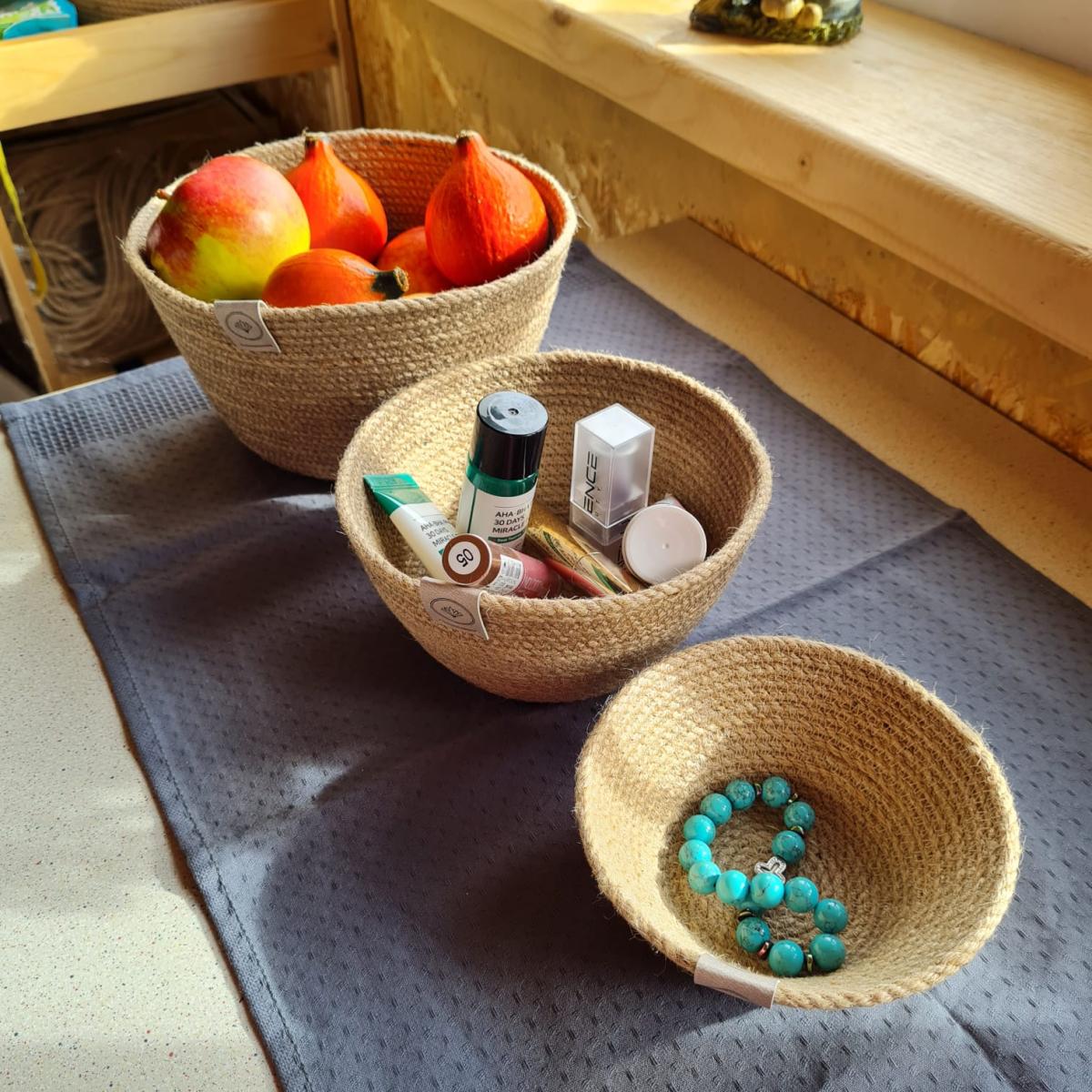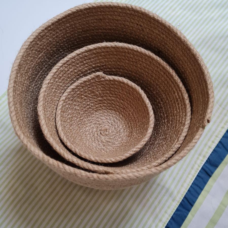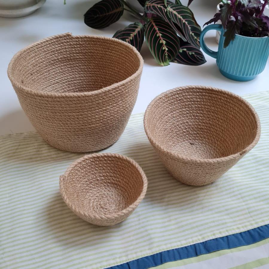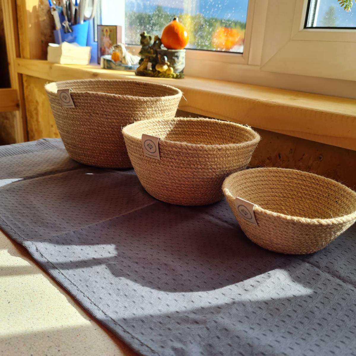 Набор корзин из джута. 3 шт. Маленькая 6х10, средняя 9х15, большая 12х18.