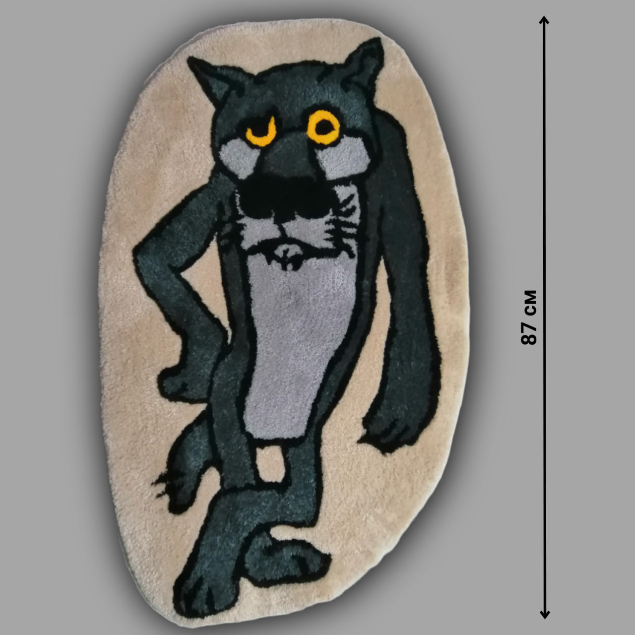 Коврик тафтинговый ручной работы. Мягкий, плотный ворс из высококачественного 100% акрила. Гипоаллергенен, не выгорает: сохраняет яркость и насыщенность цветов долгие годы. Его не ест моль. Основа - ткань для вышивания ковров: хлопок+полиэстер. Оборотная сторона - нетканый заливной слой, который не осыпается со временем, что обеспечивает долговечность. Такой коврик можно бережно стирать мягкой щёткой.