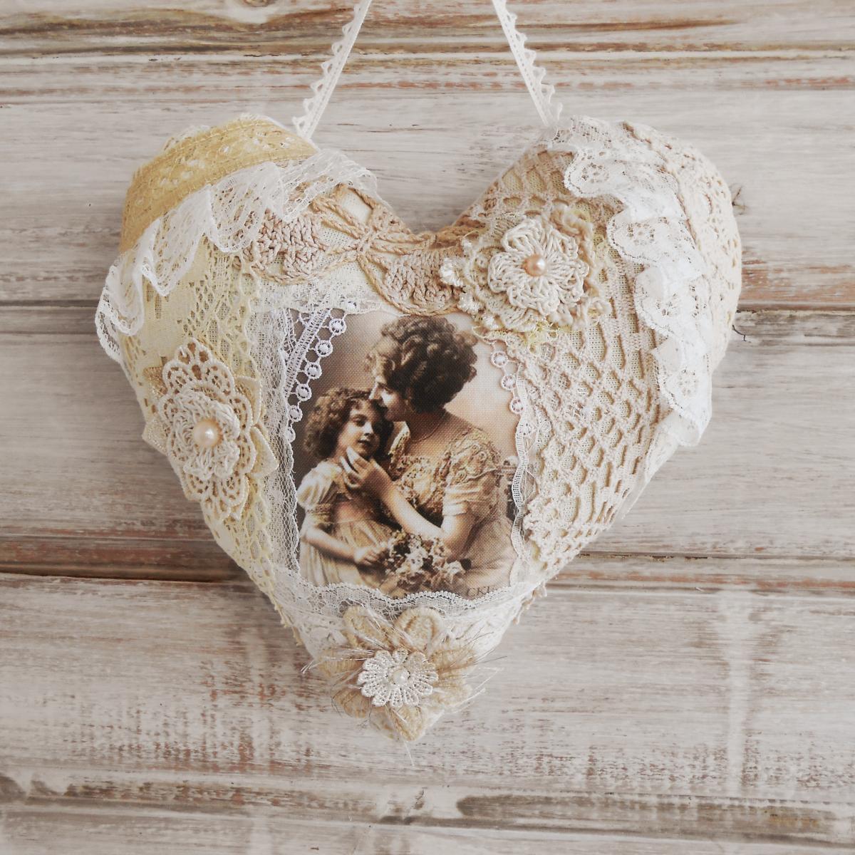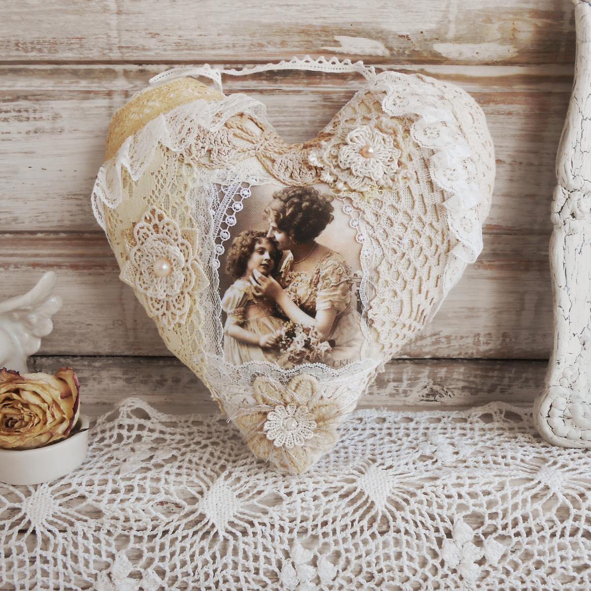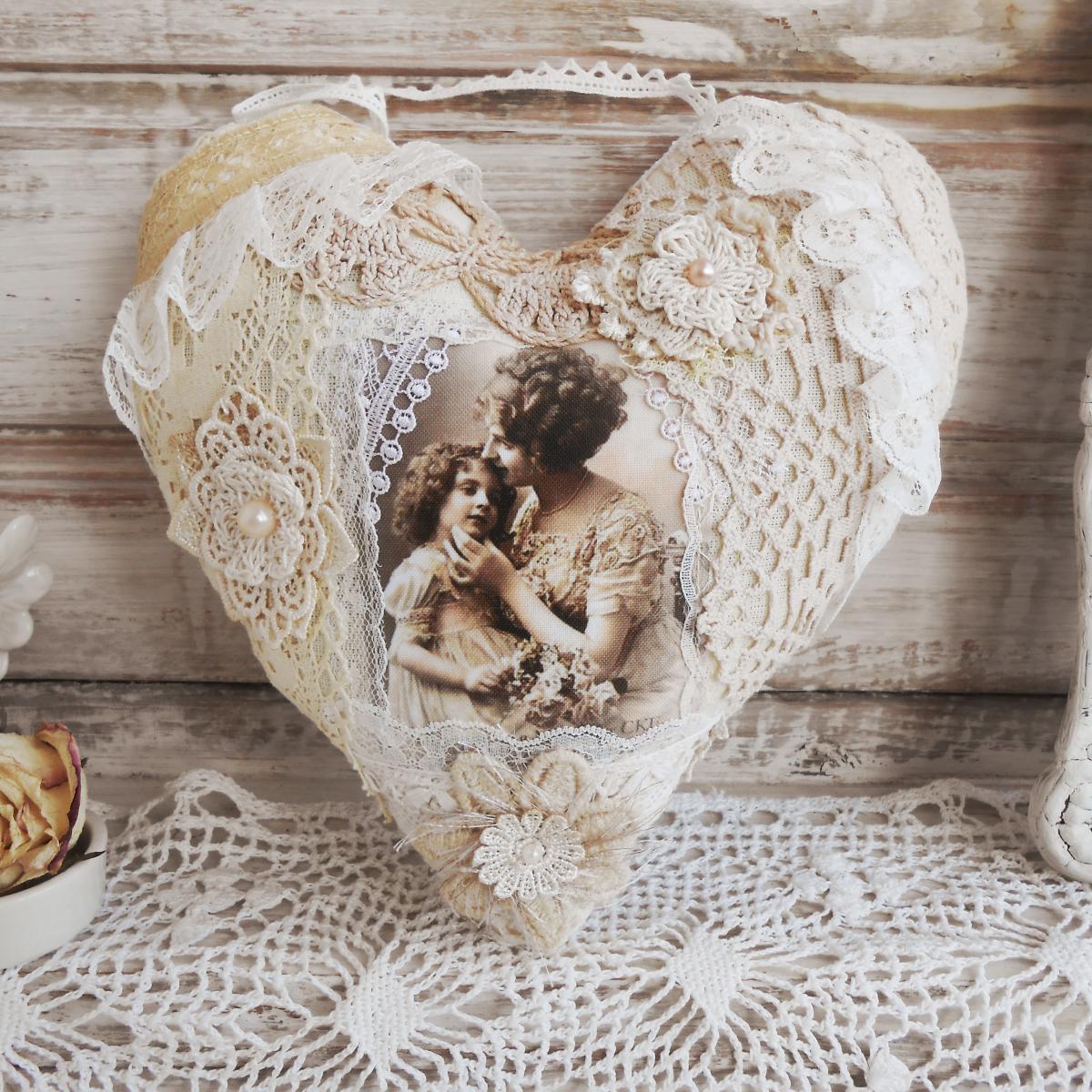 Кружевное сердце для интерьера. Шебби шик.
