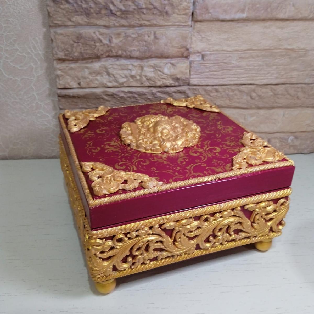 Шкатулочка ручной работы. Бордо с золотом, смотрится дорого-богато