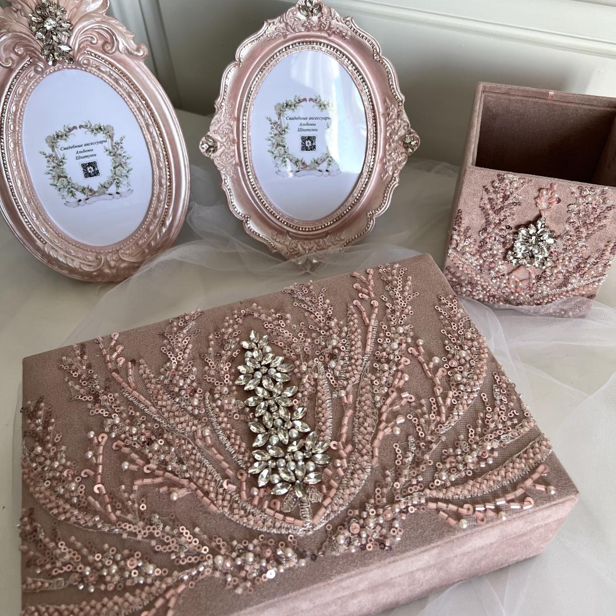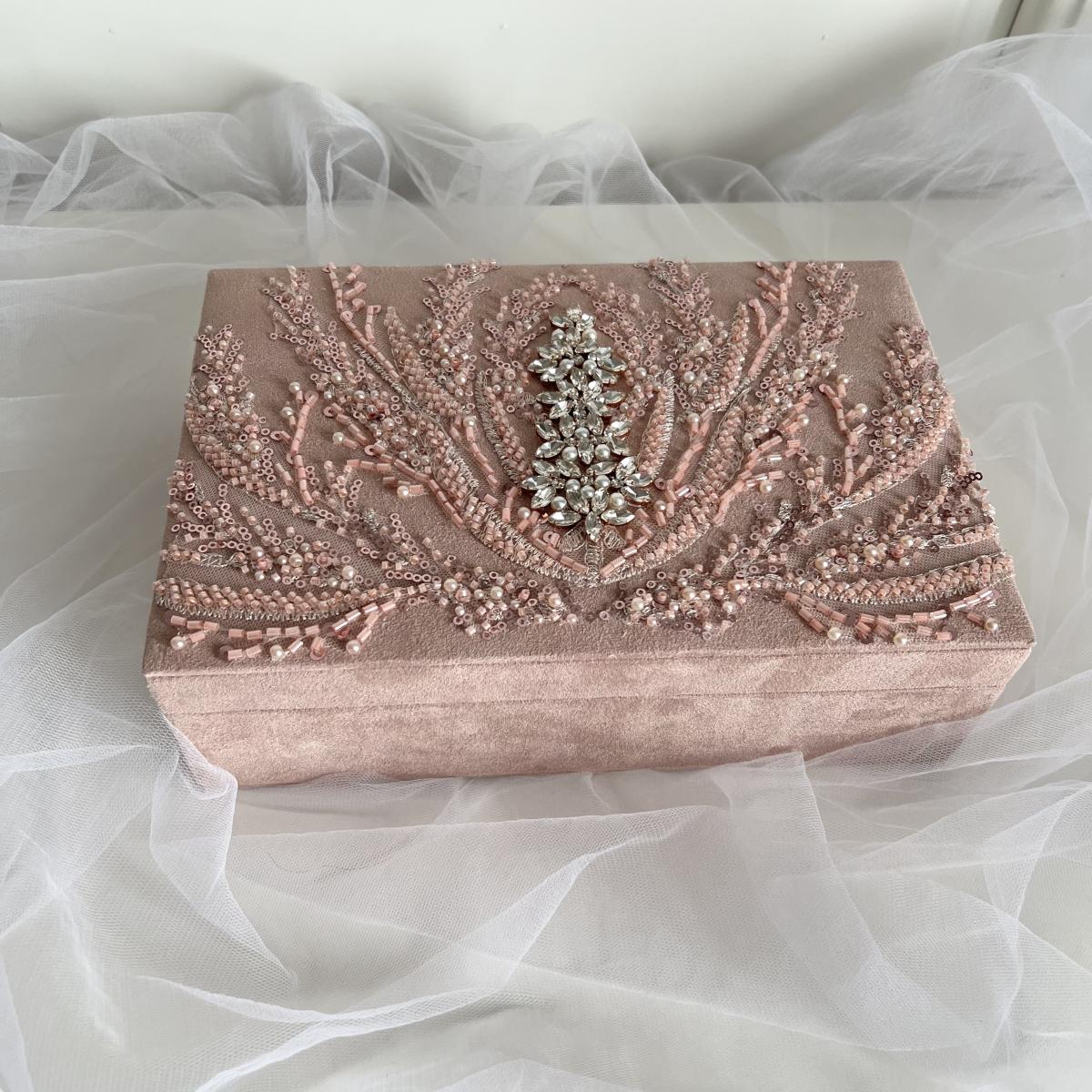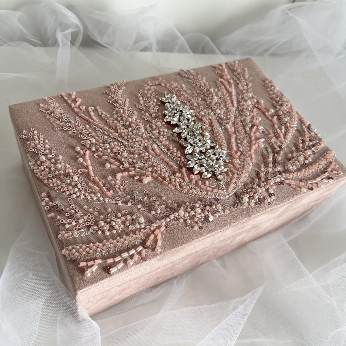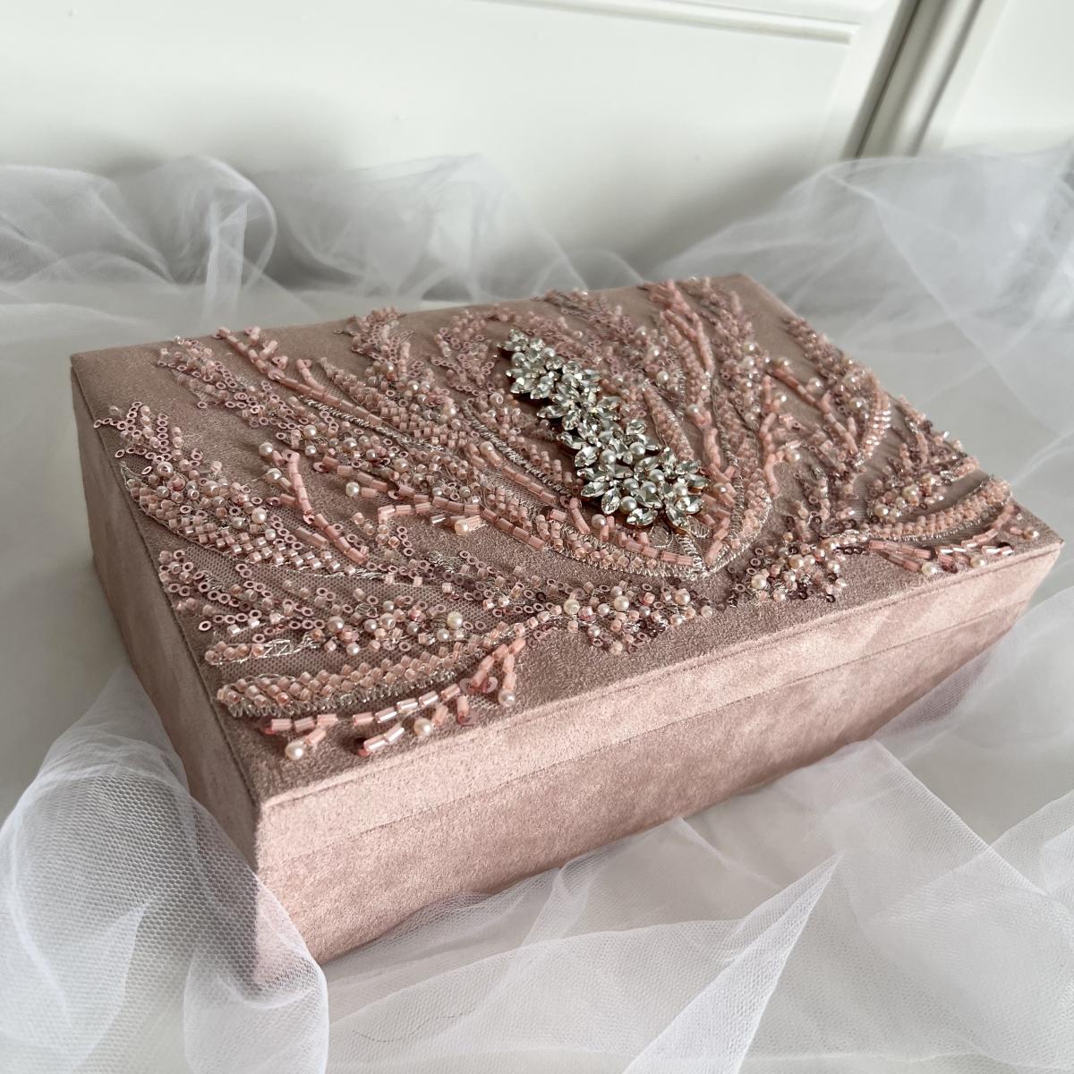Шкатулка декорирована вышивкой, богато расшитый бисером, пайетками и стеклярусом, а так же вышивкой из кристаллов.