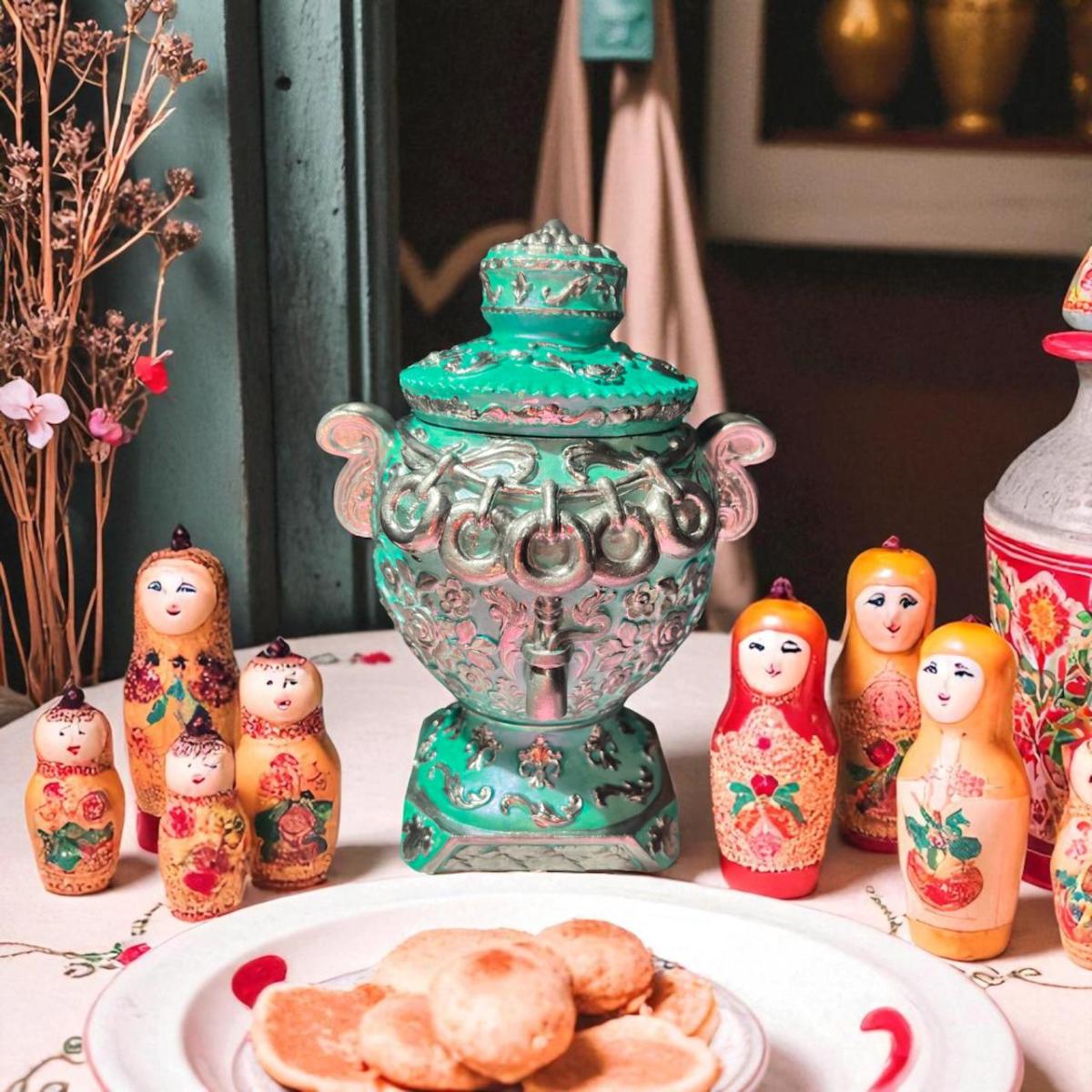 Шкатулка-свеча "Самовар " . Изготовлена из гипса, окрашена акриловыми красками, покрыта лаком.