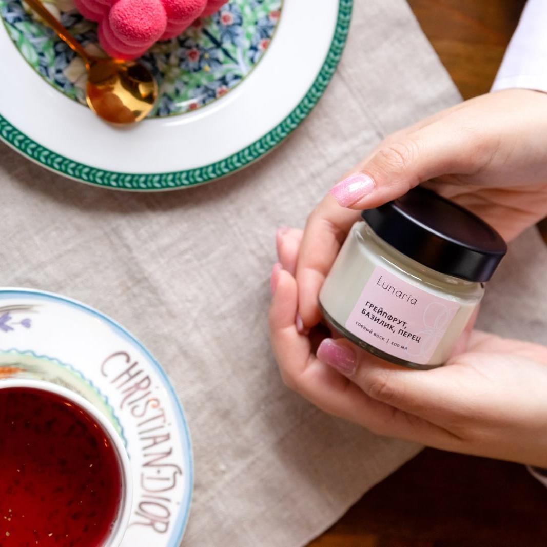 Эти элегантные ароматические свечи изготовлены исключительно из натурального соевого воска — экологически чистого материала, безопасного для здоровья и окружающей среды. Свечи дополнены уникальным деревянным фитилём, создающим уютную атмосферу мягким треском при горении. Благодаря качественной композиции, продолжительность её горения составляет от 20 до 40 часов, позволяя насладиться насыщенным ароматом долгое время.