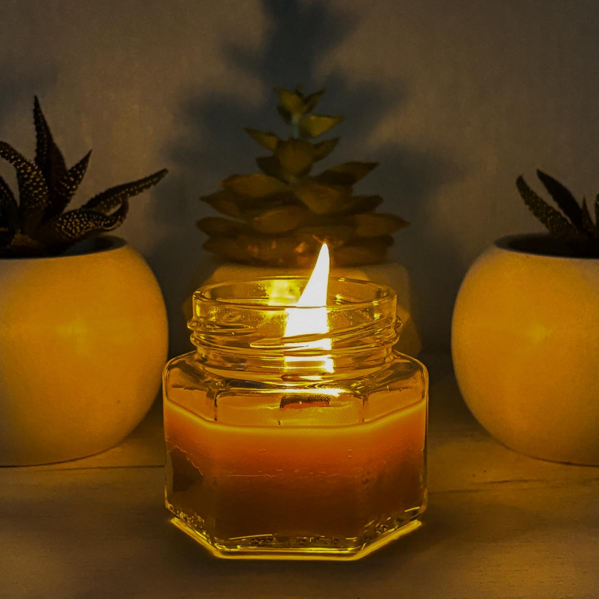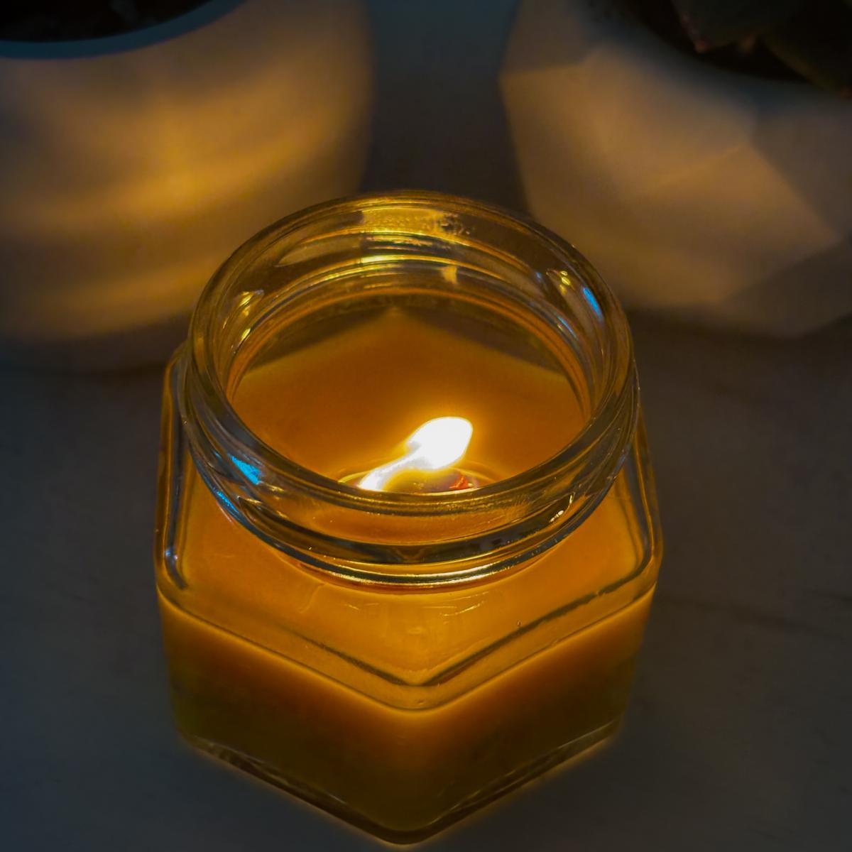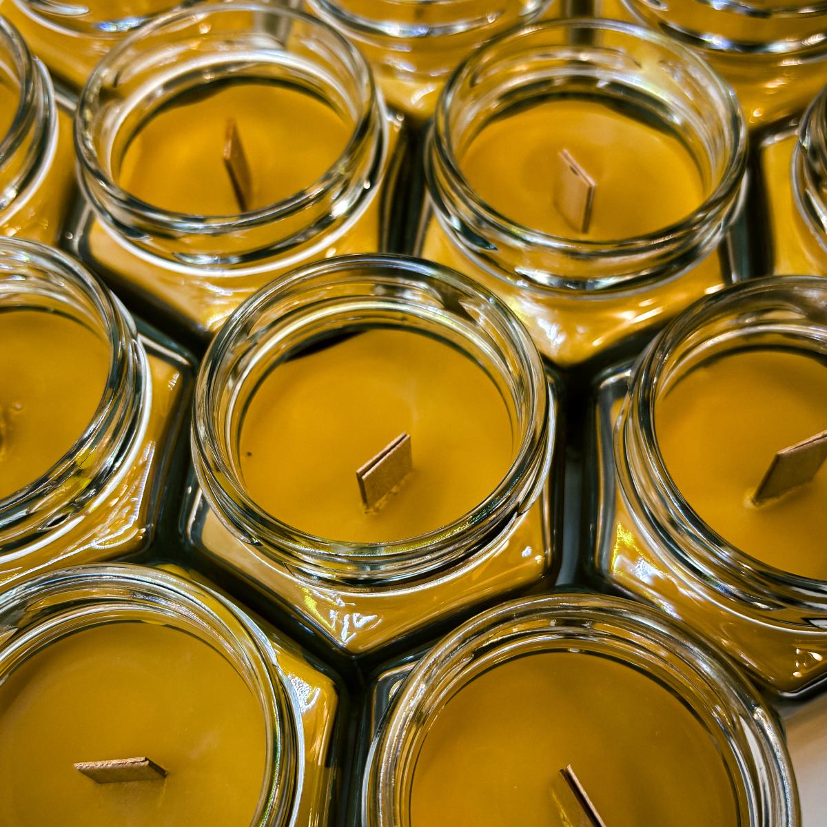 - Состав: 100% пчелиный воск, двойной деревянный фитиль, стеклянная банка.