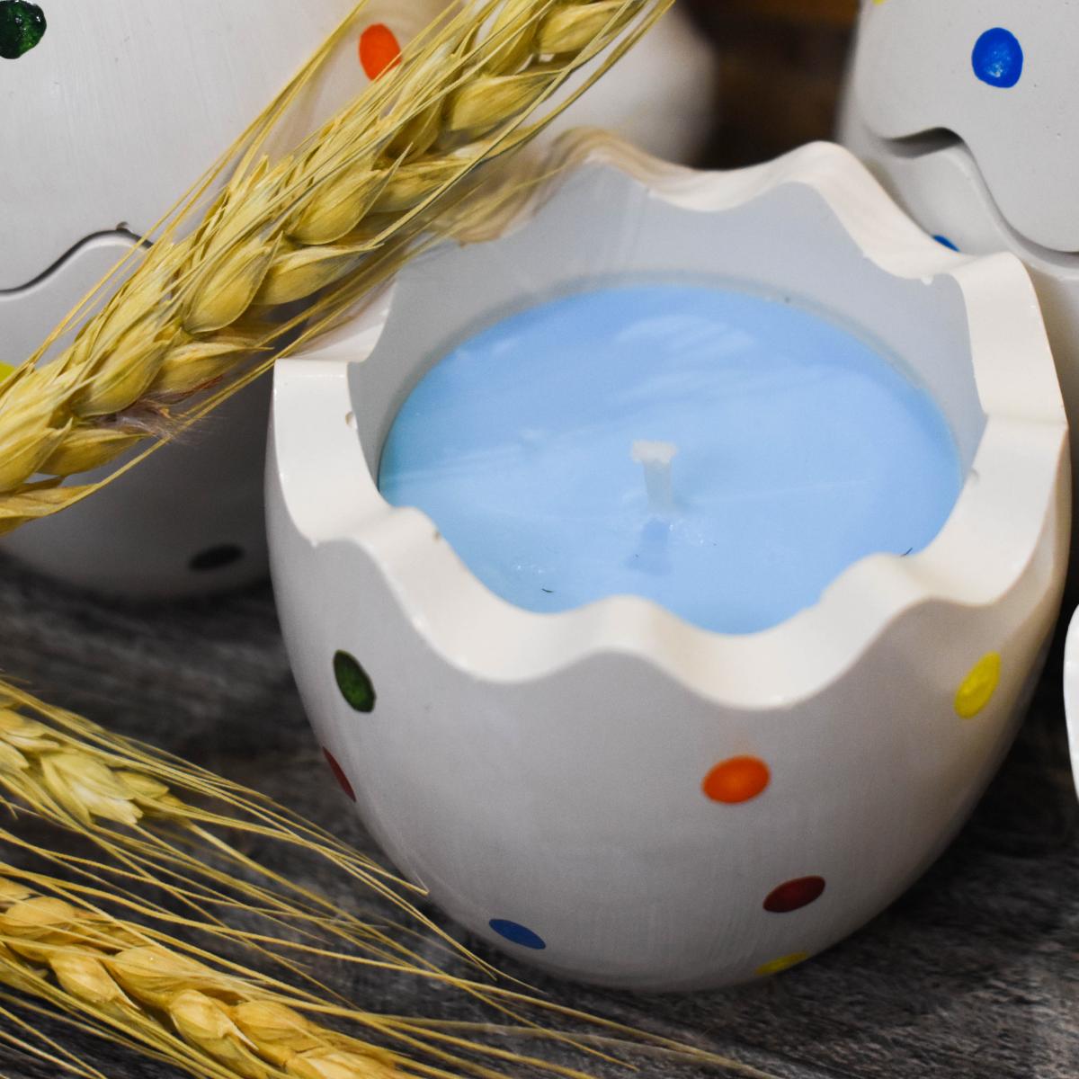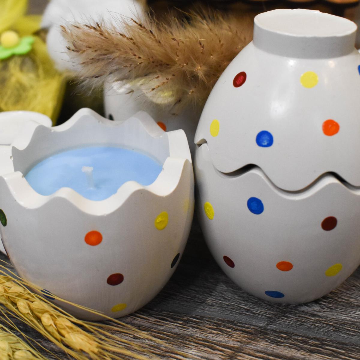 Веселая свечка в виде яичка в горошек отлично украсит детскую комнату или просто станет частью вашего интерьера неся радость и улыбку.