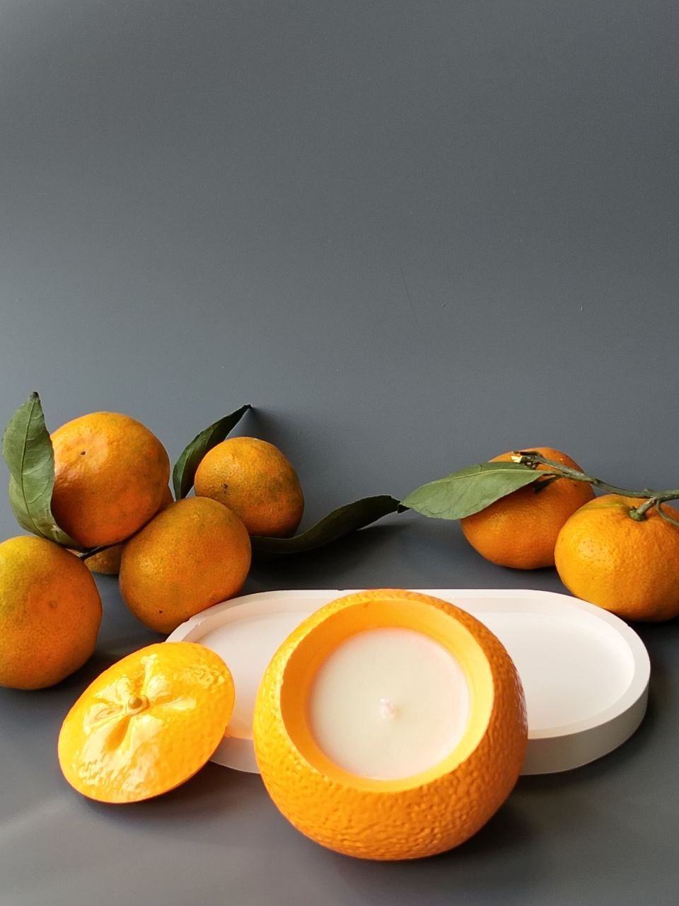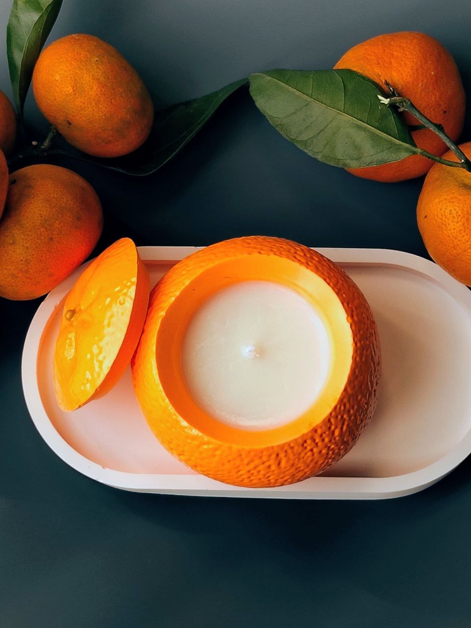 Свеча мандарин с ароматом мандариновое дерево.