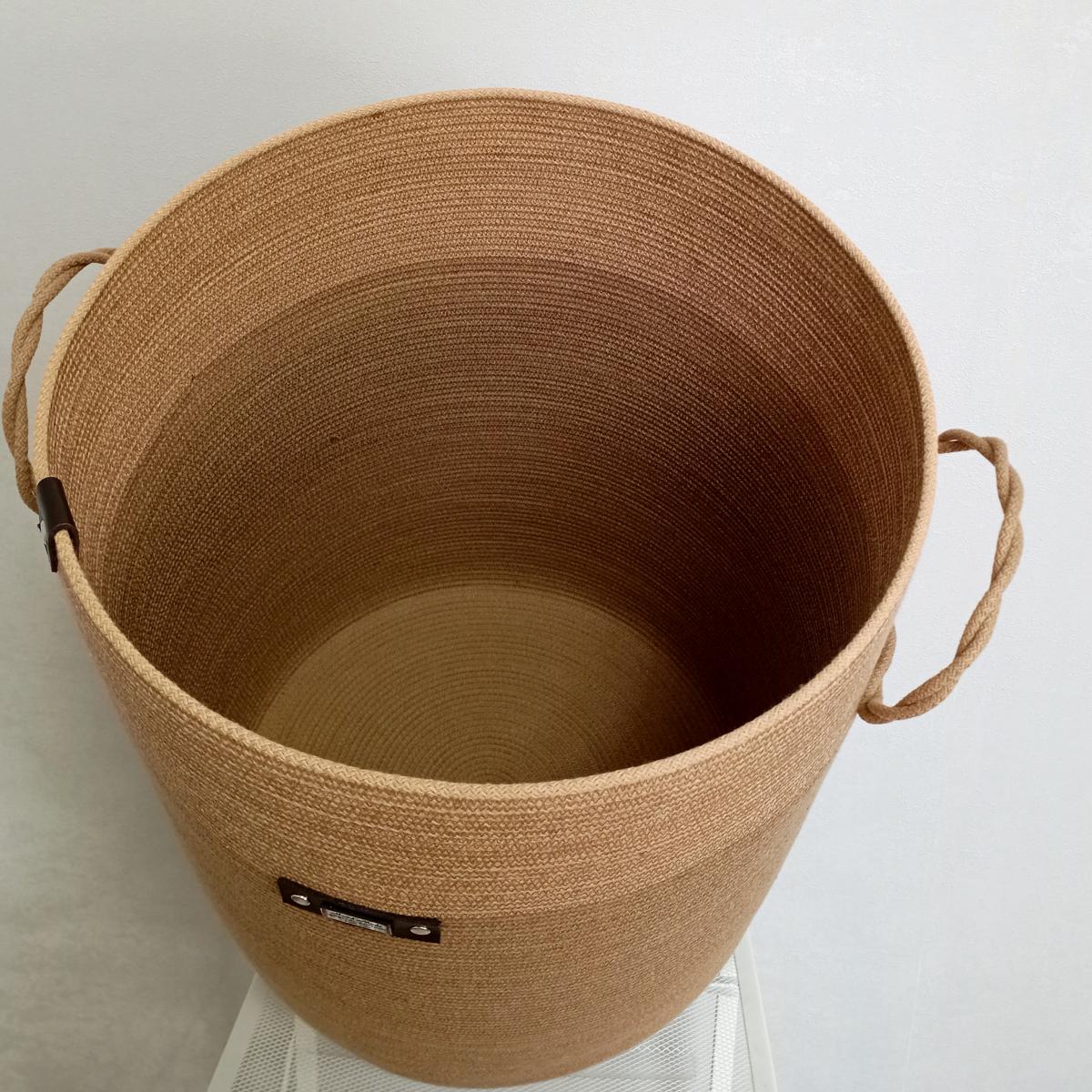 Корзина для белья с крышкой коричневая из хлопкового шнура в технике "зигзаг" ручной работы