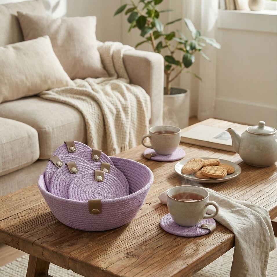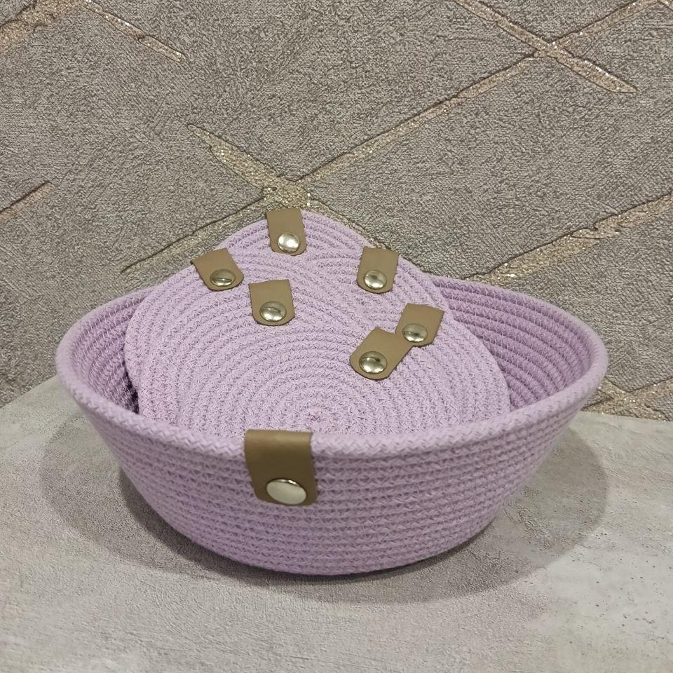 Набор плетёных изделий из шнура нежно-сиреневого цвета