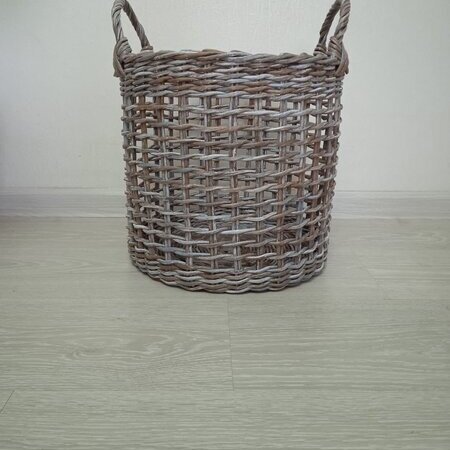 Корзина плетёная ручной работы из крепкой бумажной лозы, для хранения вещей, белья,игрушек или других полезных предметов. Обработана водоотталкивающим покрытием безопасным для детей и пищевых продуктов. Диаметр 33 см, высота 31 см, высота с ручками 40 см.