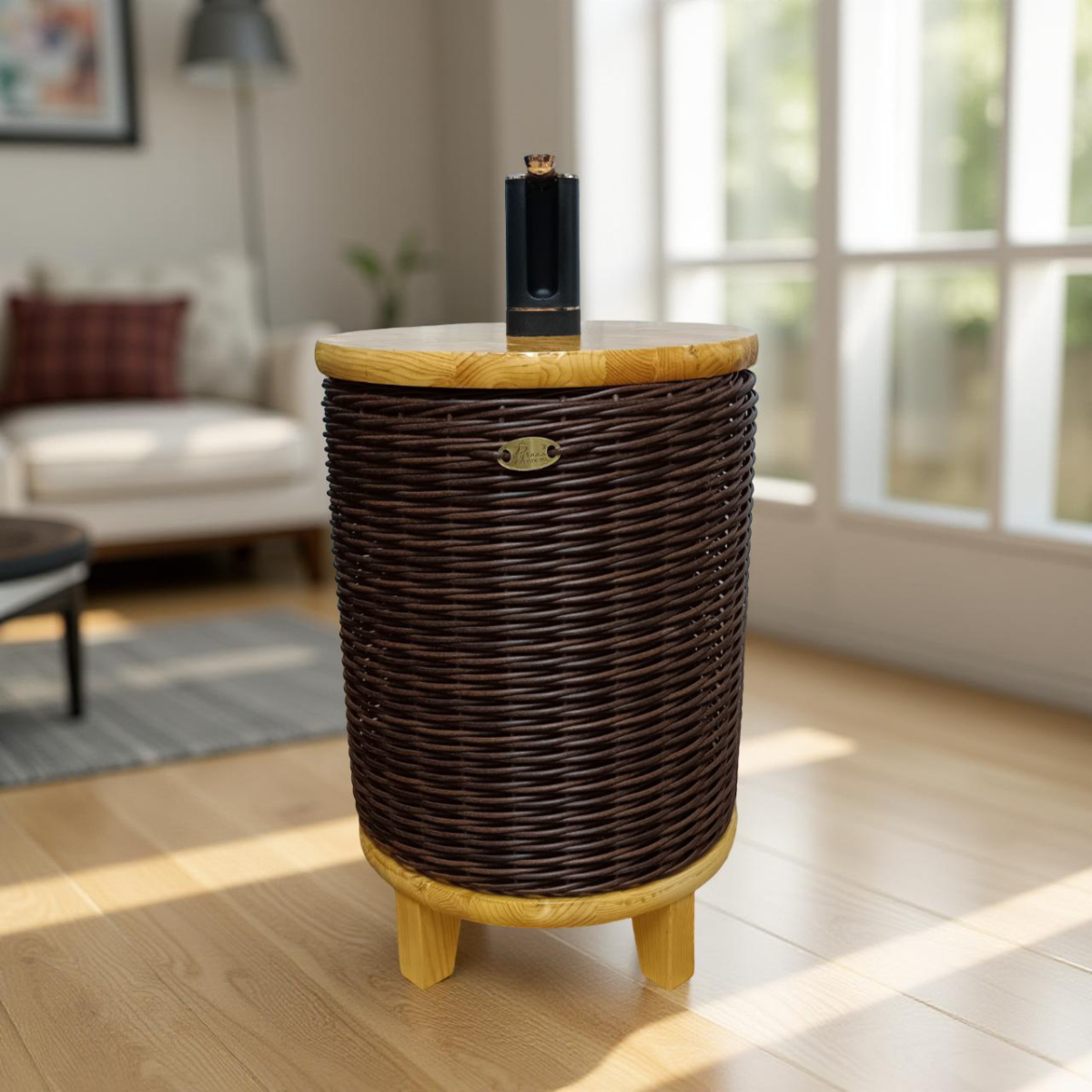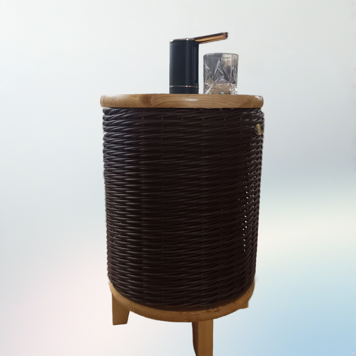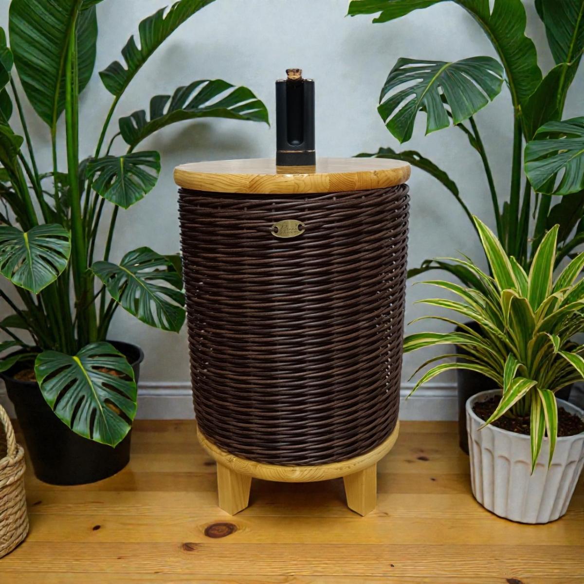 Чехол выполнен из эко ротанга высокого качества от производителя. Шикарный близко к натуральному цвету "коньячный дуб". Не боится разницы температур.