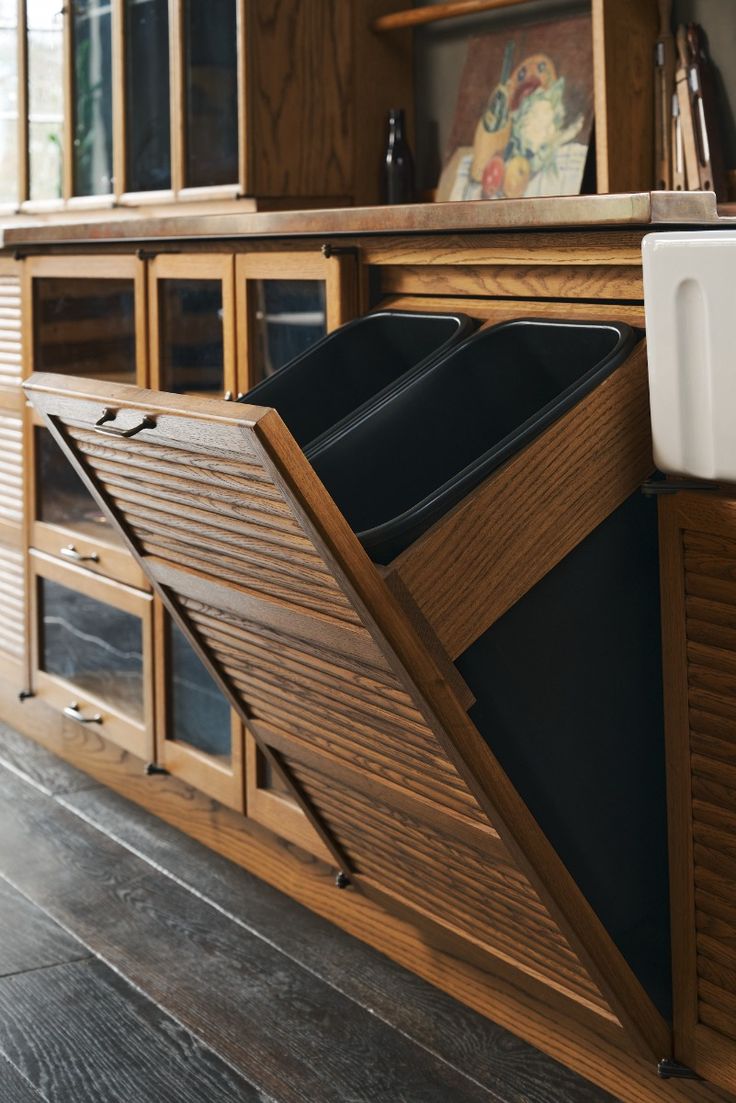 - Нижние шкафы используются для размещения крупной бытовой техники, таких как духовка, посудомоечная машина, а также для хранения продуктов и кухонных принадлежностей.