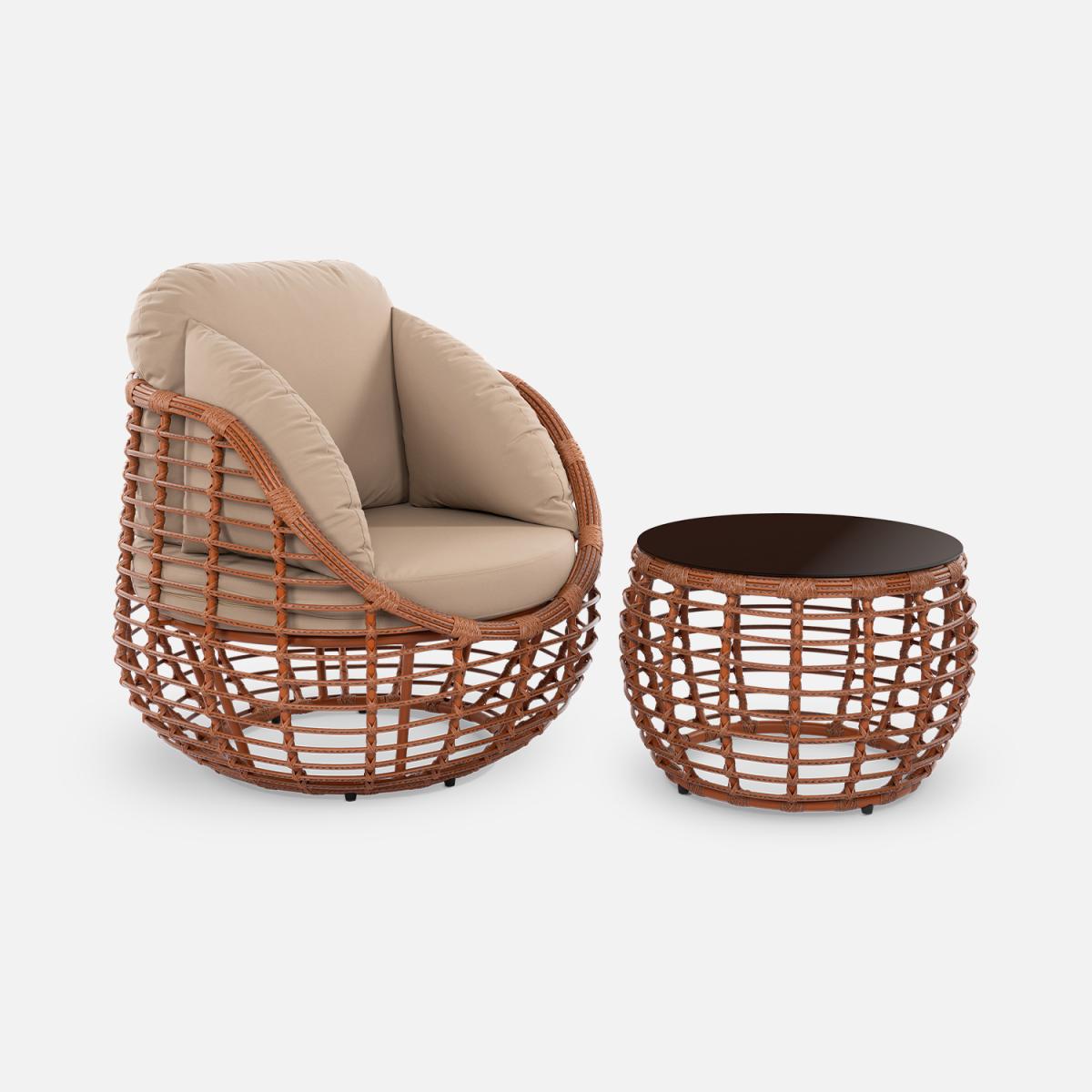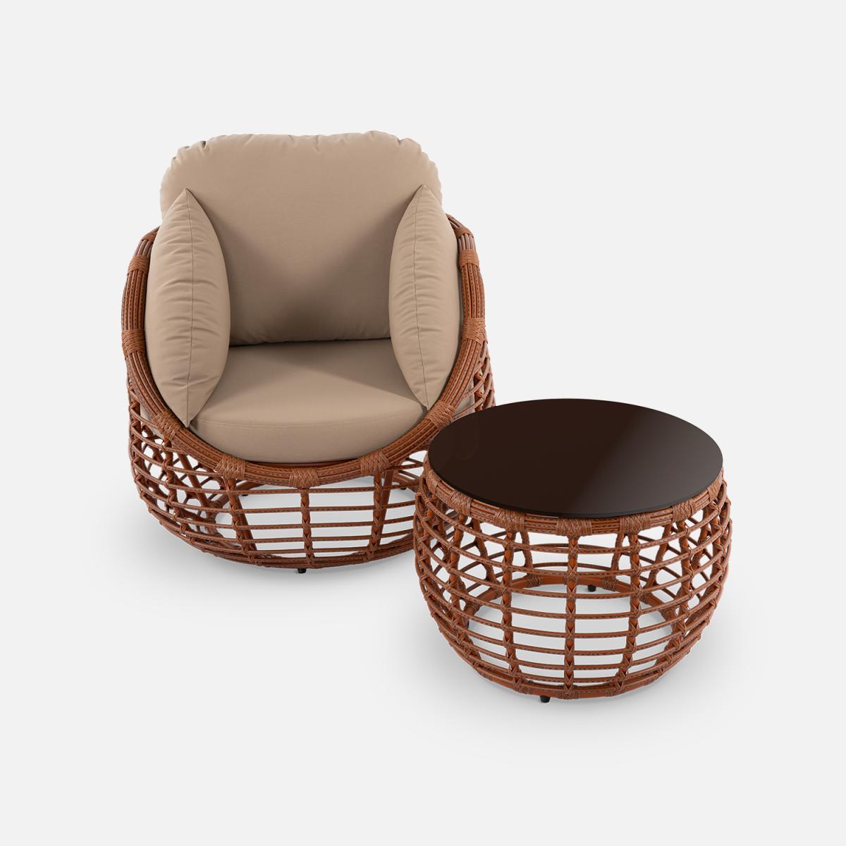 Этот кофейный стол станет идеальным дополнением вашего интерьера, привнося в него элегантность и современный шарм. Изготовленный из искусственного ротанга диаметром 10 мм, он отличается прочностью и изысканным внешним видом.