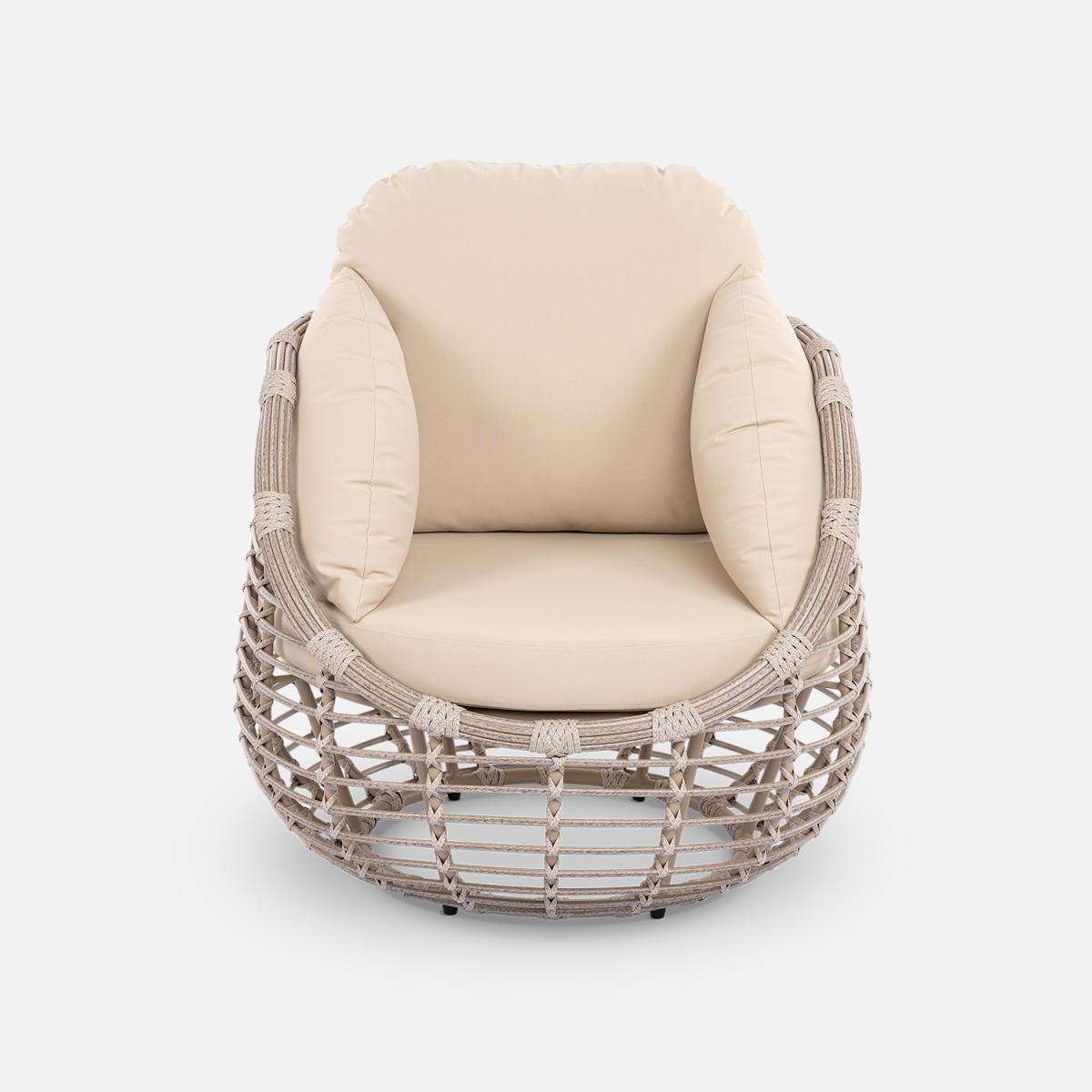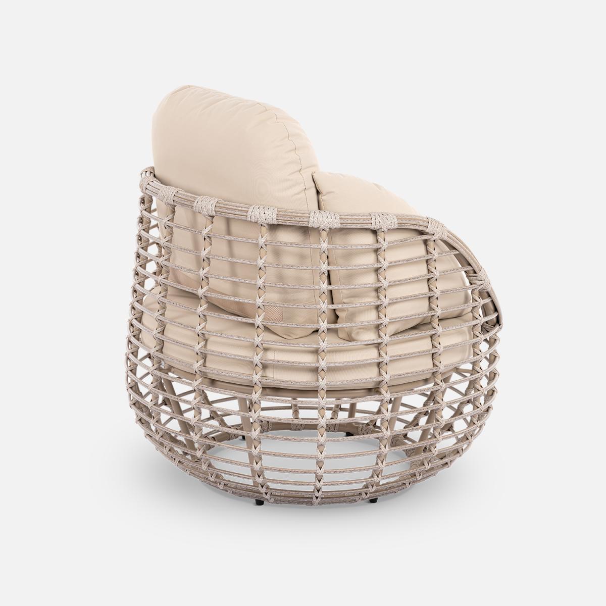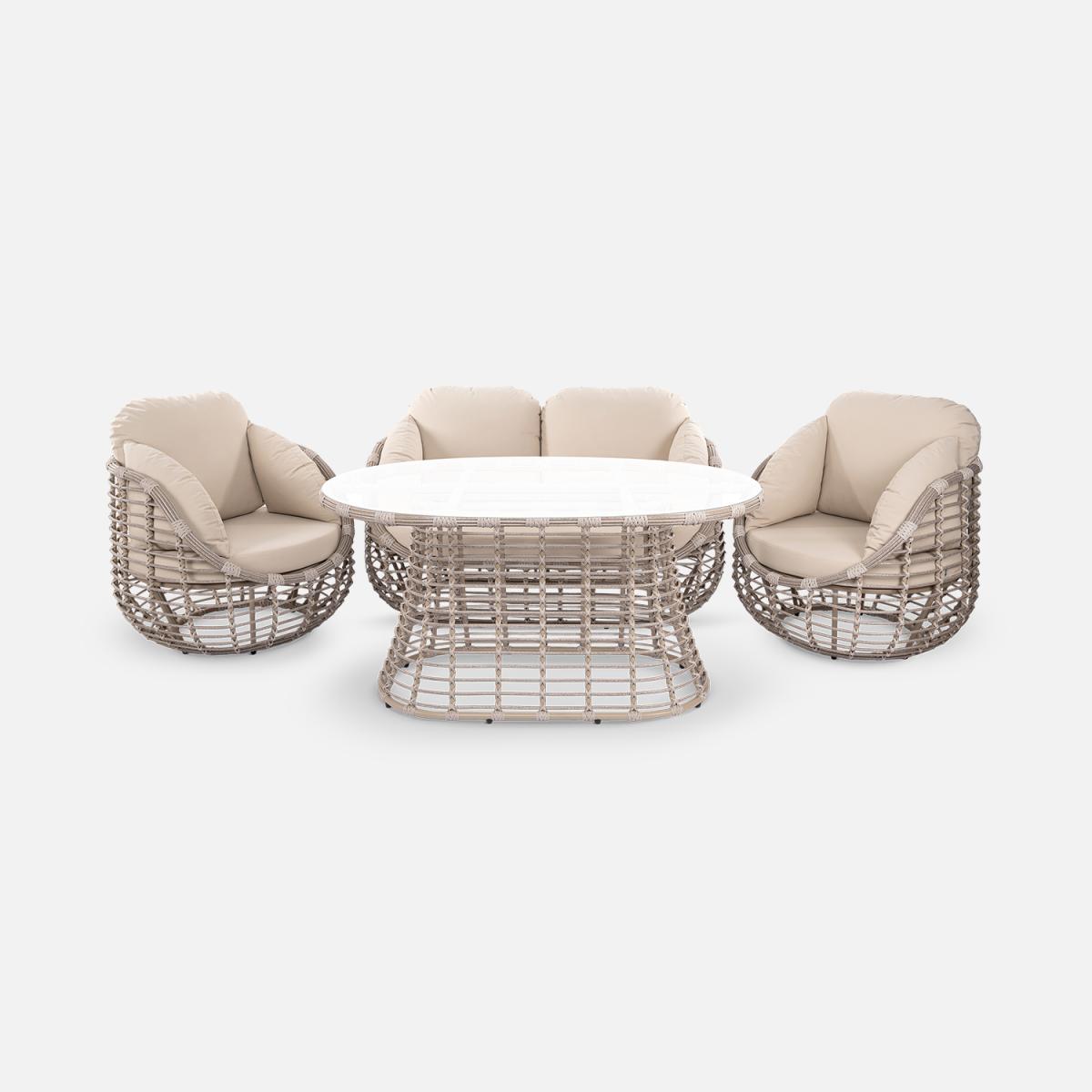 Изготовленная из искусственного ротанга диаметром 10 мм, группа отличается прочностью и долговечностью, а алюминиевый каркас с порошковой окраской обеспечивает надежность и защиту от внешних воздействий.