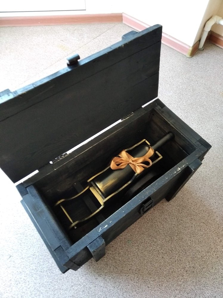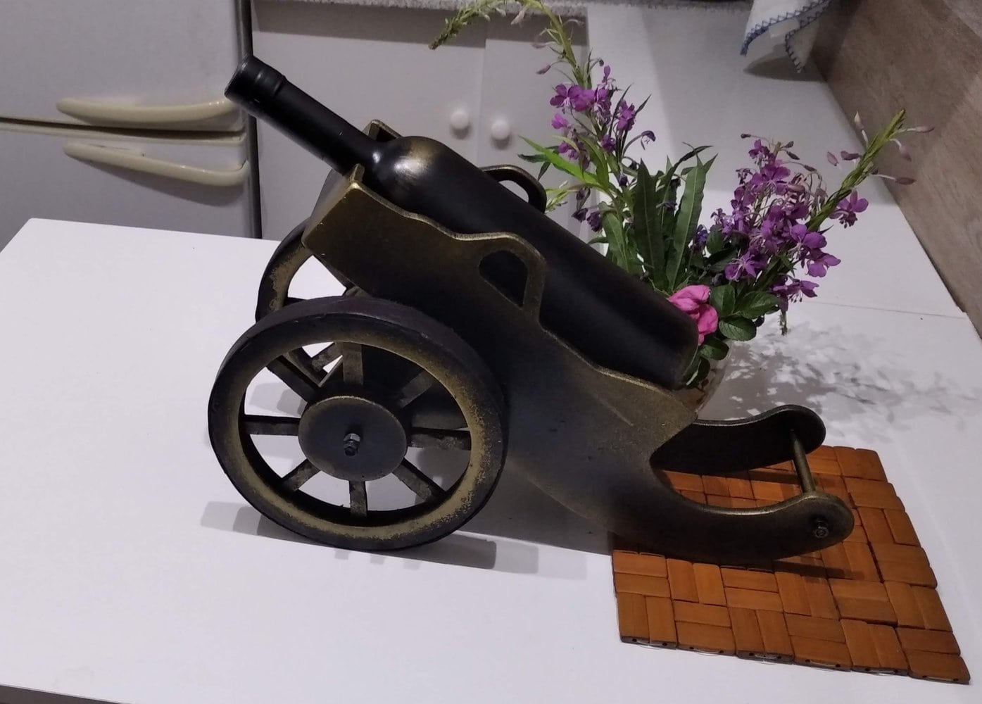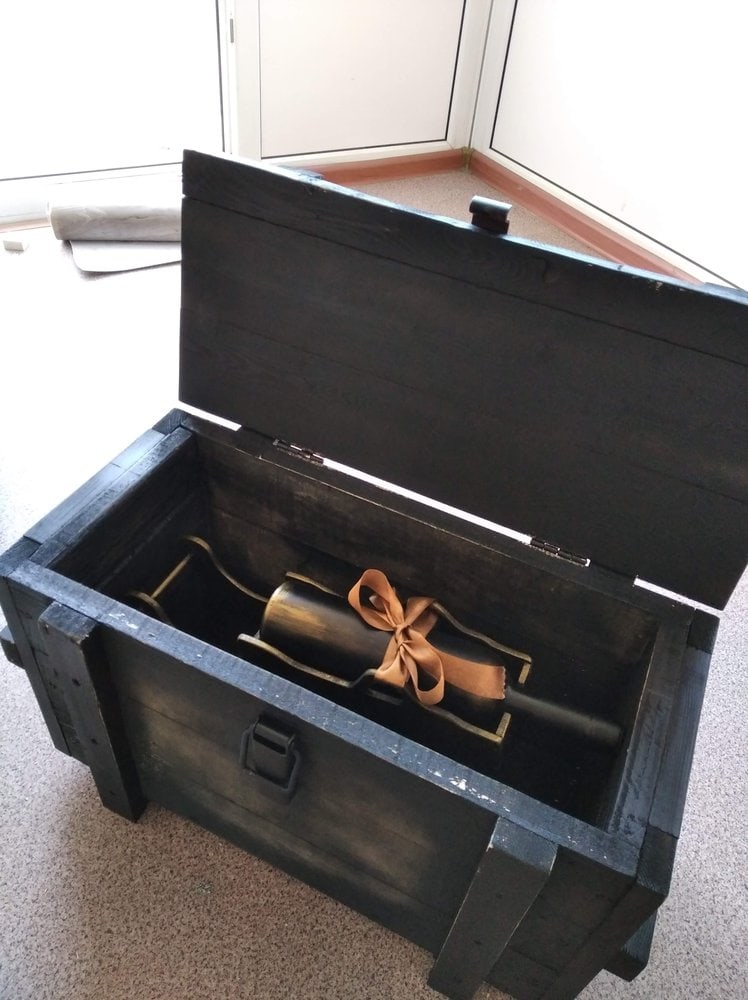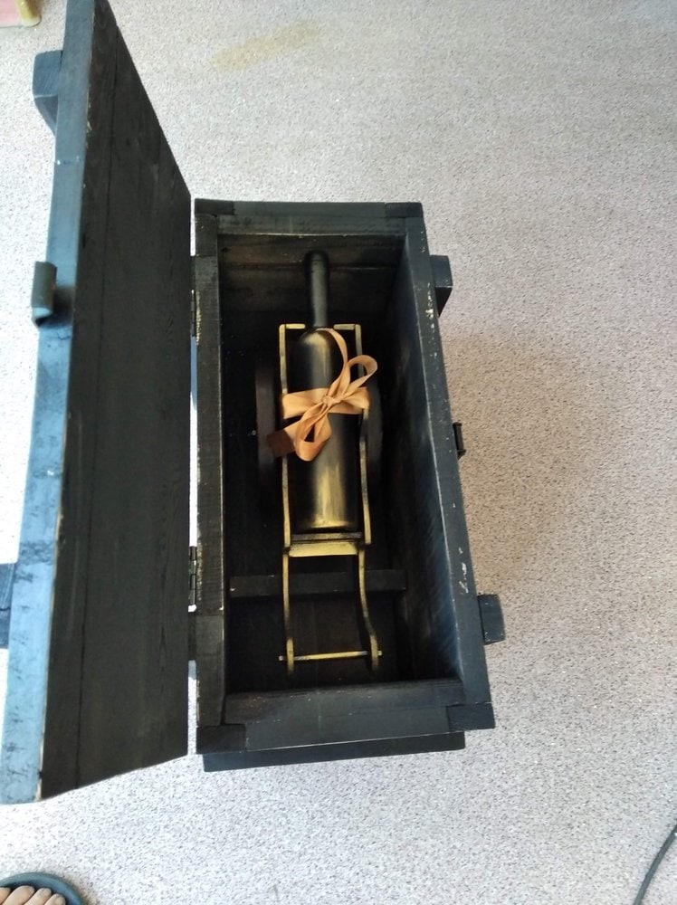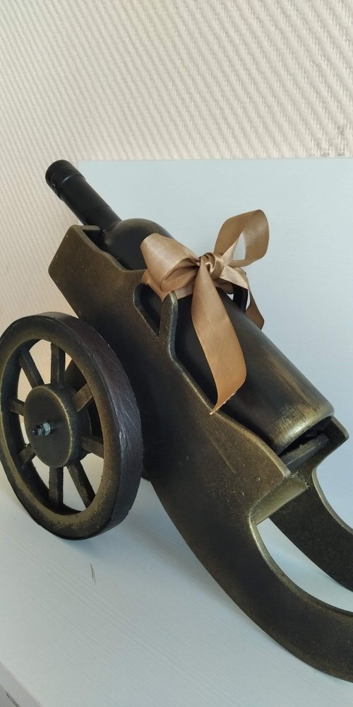 Подставка под бутылку "пушка" в декоративном ящике. Материал: массив сосны, фанера, кожа, замша. Опт и розница. При заказе оптового изготовления сроки обговариваются индивидуально.